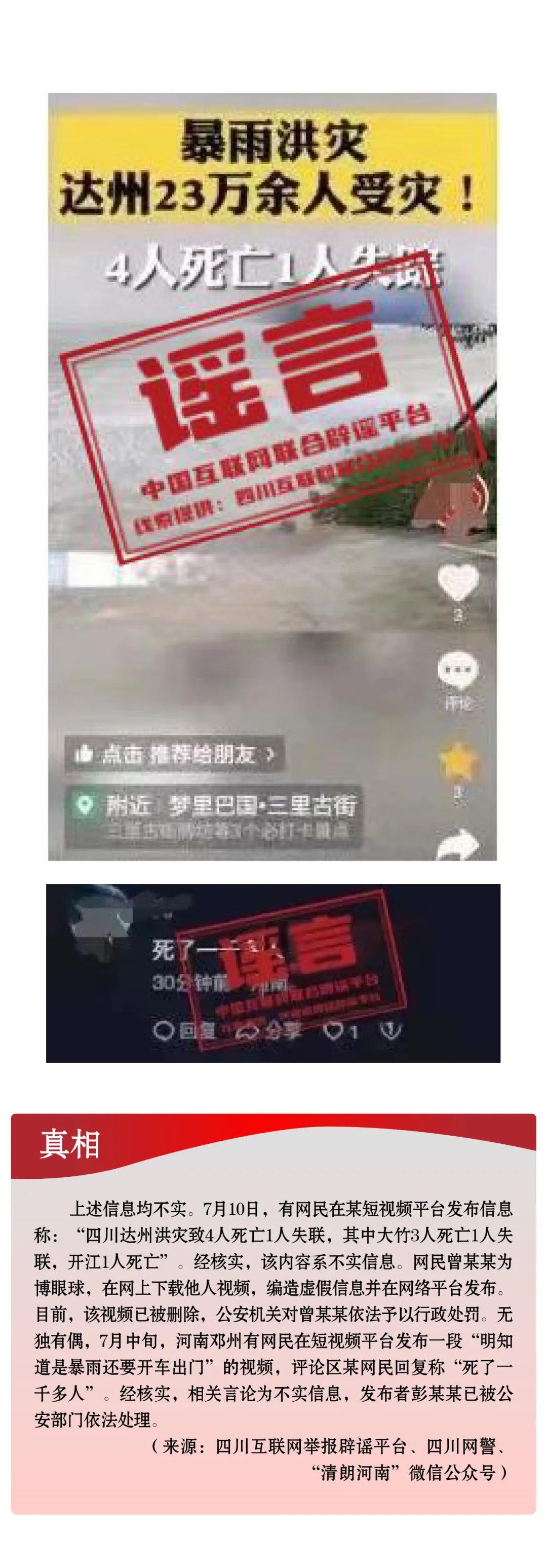 打击网络谣言 共建清朗家园 中国互联网联合辟谣平台2024年7月辟谣榜