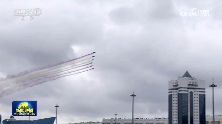 当地时间7月2日,习近平主席飞抵阿斯塔纳,开启中亚之行。哈萨克斯坦总统托卡耶夫在机场举行盛大迎宾仪式。第二天上午,哈萨克斯坦首次在总统府欢迎仪式上安排战机表演,以最高礼仪欢迎习主席到访。