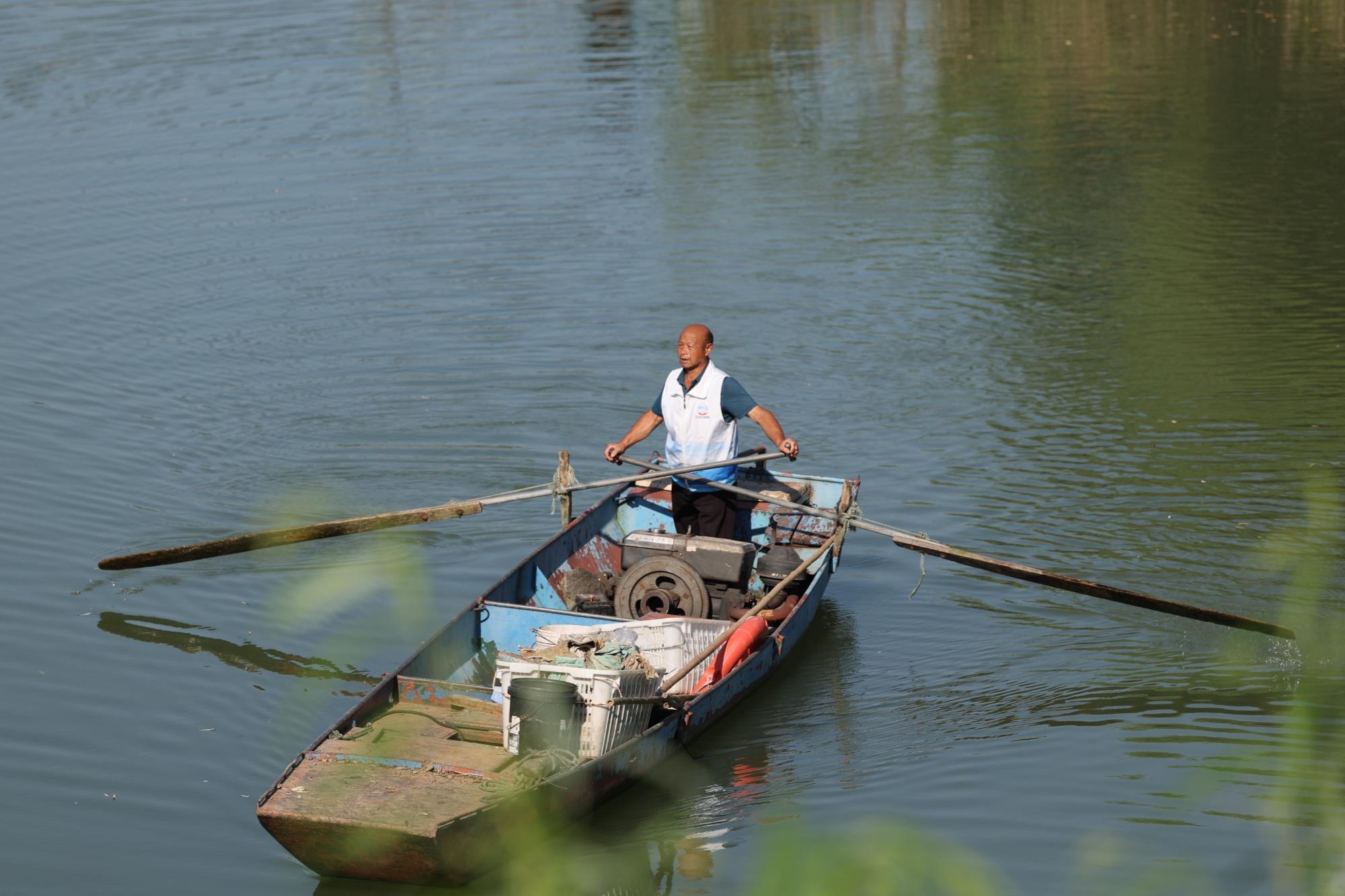 2020年,长江流域重点水域“十年禁渔”全面启动,老蒋积极响应,主动上交跟了自己半辈子的9条渔船。后来,为了发挥他熟悉水域、水性好的特长,当地政府为他配置了一条“守井卫士”船,用于巡江清漂和水上救援。