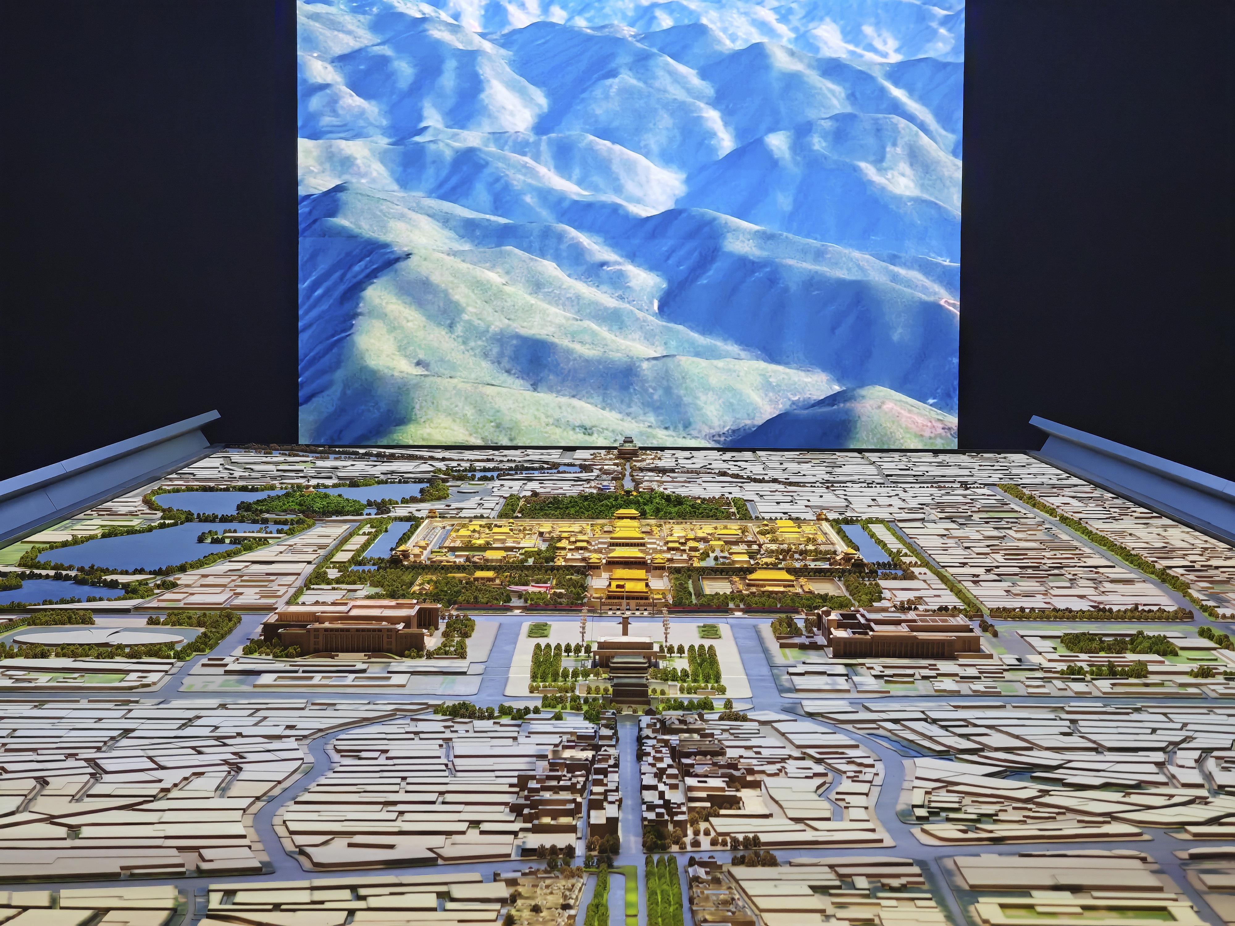 △ 2023年3月,北京首都博物馆精心制作的16米长中轴线沙盘,配以立体投影技术,展现了北京中轴线之壮美。