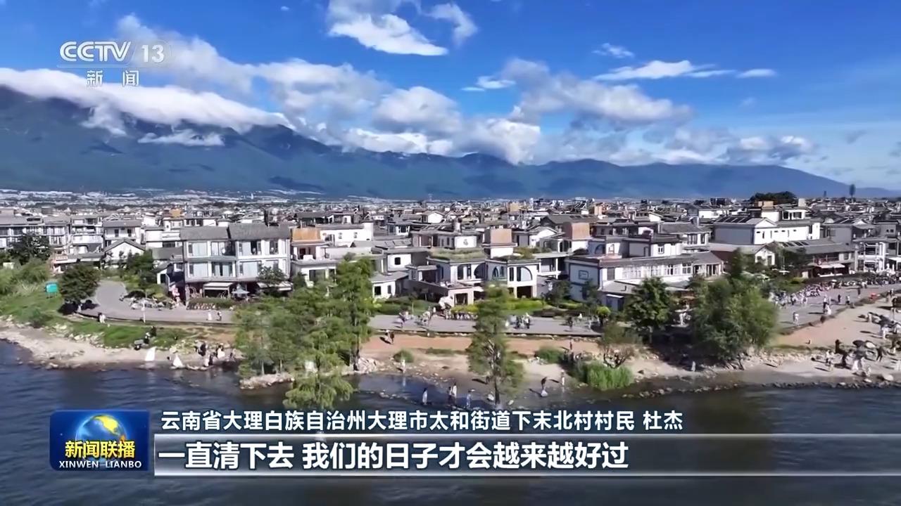 云南省大理白族自治州大理市太和街道下末北村村民 杜杰:我们村的人去洱海,如果看到垃圾他们会去捡。政府对洱海保护的决心力度是很大的,现在慢慢把我们村民也感化了,一定要保护好洱海,洱海水清了,一直清下去,我们的日子才会越来越好过。