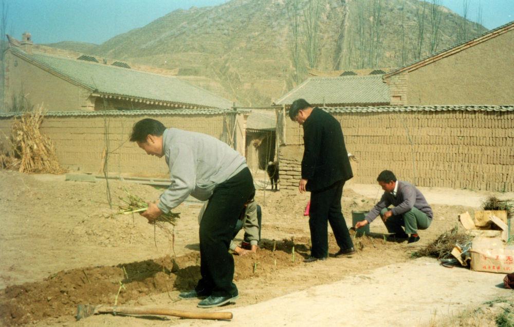 1997年4月,林占熺(左一)带领科研团队首次在宁夏彭阳县试种菌草。新华社发