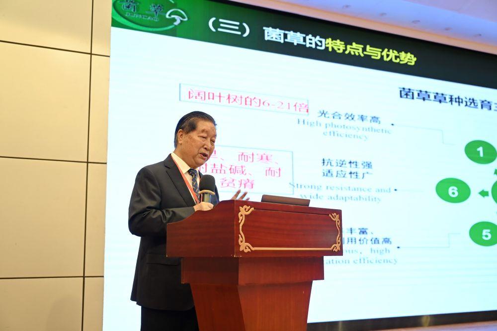 6月16日,第十九届国际菌草产业发展研讨会在福建福州举行,国家菌草工程技术研究中心首席科学家林占熺发表《菌草技术助力落实联合国可持续发展目标的潜力》主旨报告。新华社记者 林善传 摄