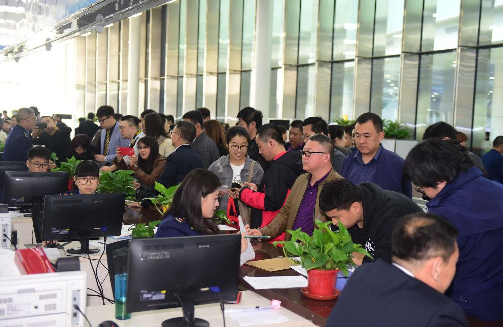 2017年4月10日,中国(辽宁)自由贸易试验区沈阳片区揭牌当日,众多企业咨询注册。新华社记者杨青 摄