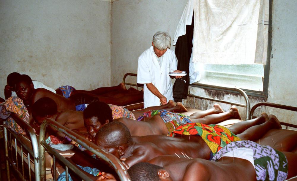 1995年,中国医生在多哥卡拉地区医院门诊部为患者进行针灸治疗。