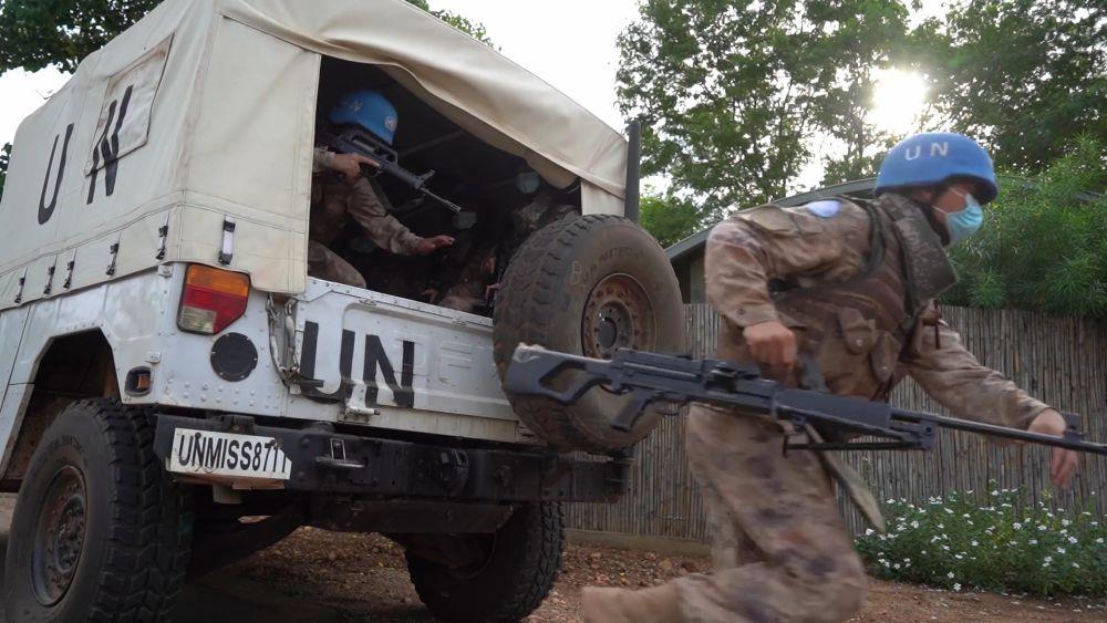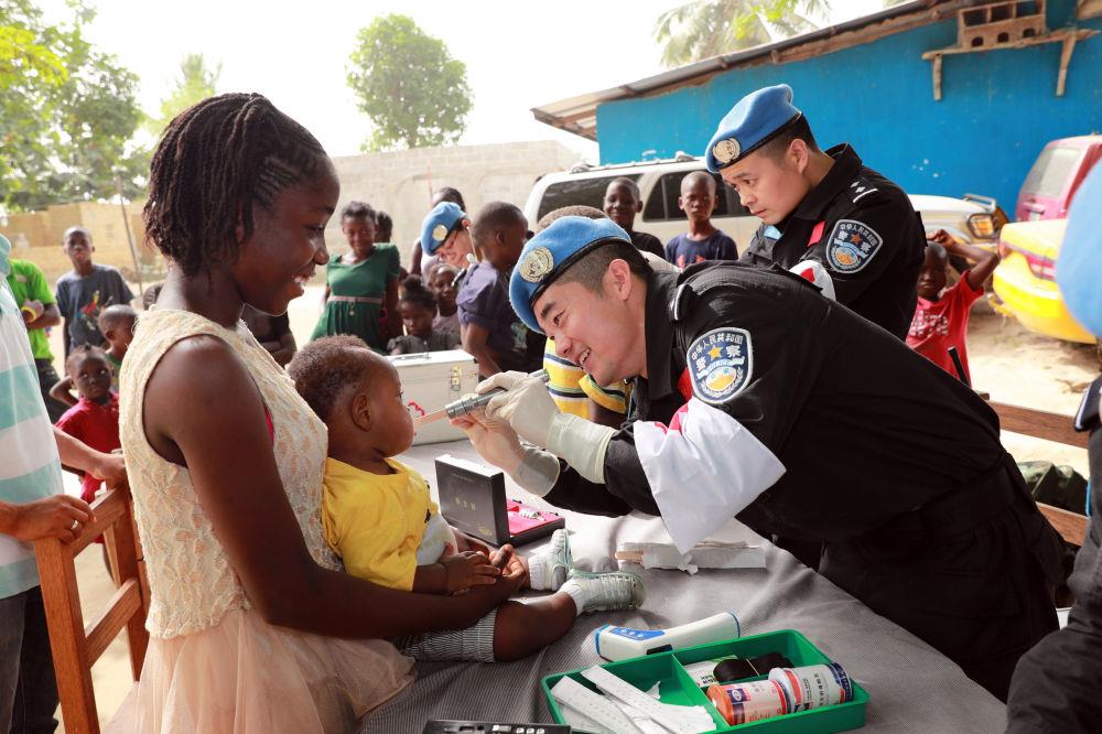 2023年6月7日,在刚果(金)南基伍省卡莱亥地区,中国第26批赴刚果(金)维和工兵分队官兵进行施工作业。 2022年7月27日,中国第八批赴南苏丹(朱巴)维和步兵营百人防暴队抵达预定区域,进行综合防卫演练。针对南苏丹社会安全问题及近期在刚果(金)东部地区发生的针对联合国刚果(金)稳定特派团的抗议示威活动,中国第八批赴南苏丹(朱巴)维和步兵营于日前组织UN HOUSE(联合国之家)综合防卫演练,以应对可能出现的难民涌入、营门遇袭、暴恐威胁等突发情况。 2017年8月8日,中国首支维和直升机分队直升机飞行在苏丹达尔富尔任务区上空。 2020年3月,在南苏丹首都朱巴,执行联合国维和任务的中国维和警察廖洁给当地警察讲解防疫知识。 2018年1月12日,在利比里亚蒙罗维亚,中国第五支驻利比里亚维和警察防暴队队员在人群控制演练中以四人小组为单位,互相协同侦察敌情。 2017年12月28日,在利比里亚蒙罗维亚,中国维和警察防暴队医疗人员为儿童做口腔检查。 2015年11月3日,在利比里亚格林维尔一座村庄,中国维和警察防暴队队员询问近期治安等情况。 2024年8月16日,在莫桑比克马普托港,当地演员表演舞蹈,欢送中国海军“和平方舟”号医院船。 2024年8月12日,中国海军“和平方舟”号医院船在莫桑比克马普托开展医疗服务。 2024年7月26日,中国海军“和平方舟”号医院船抵达马达加斯加安齐拉纳纳港。 2024年7月8日,塞舌尔民众在中国海军“和平方舟”号医院船上排队就诊。 2023年7月14日,中国海军第43批护航编队南宁舰驶入刚果(布)黑角港,开始对刚果(布)进行为期4天的友好访问。 2023年7月8日,中国海军第43批护航编队官兵向加蓬利伯维尔奥文多港码头的欢迎人群挥手致意。中国海军第43批护航编队抵达加蓬利伯维尔,开始对加蓬进行为期4天的友好访问。 2023年6月27日,中国海军第43批护航编队抵达加纳特马港码头,开始对加纳进行为期4天的友好访问。 2023年6月25日,中国和科特迪瓦双方官兵在南宁舰举办的甲板招待会上交流。中国海军第43批护航编队22日抵达科特迪瓦经济首都阿比让,开始对科特迪瓦为期4天的友好访问。