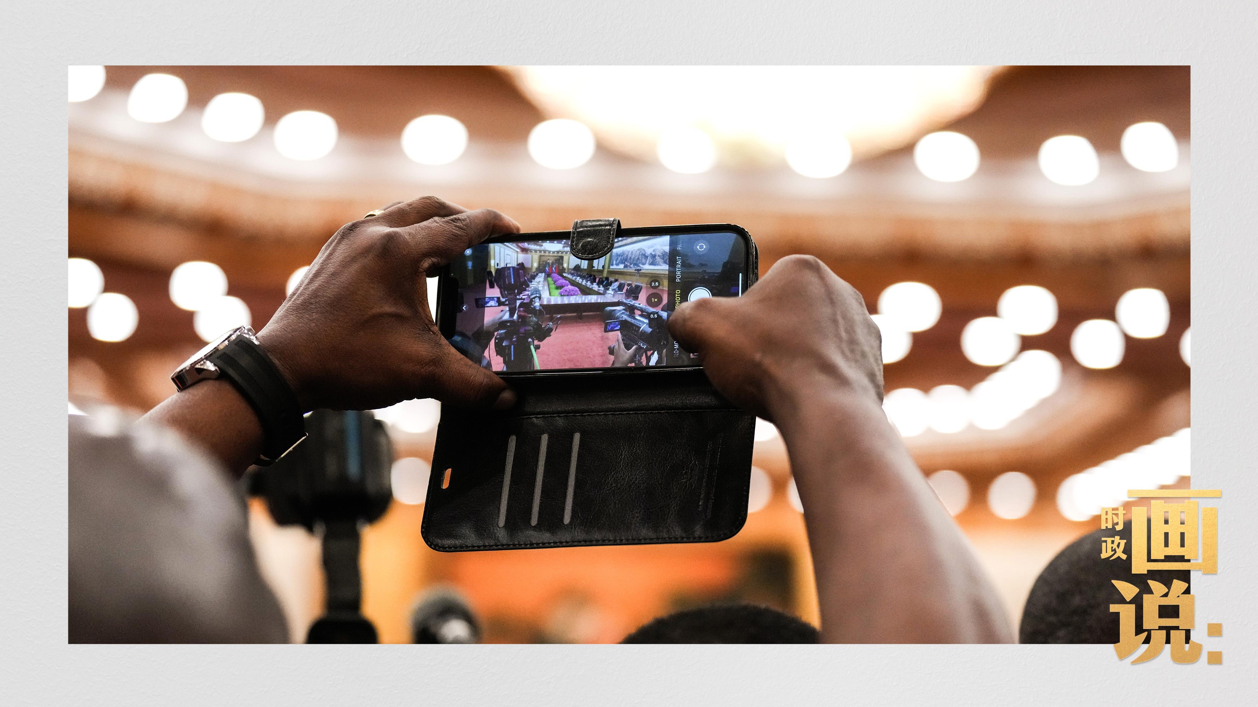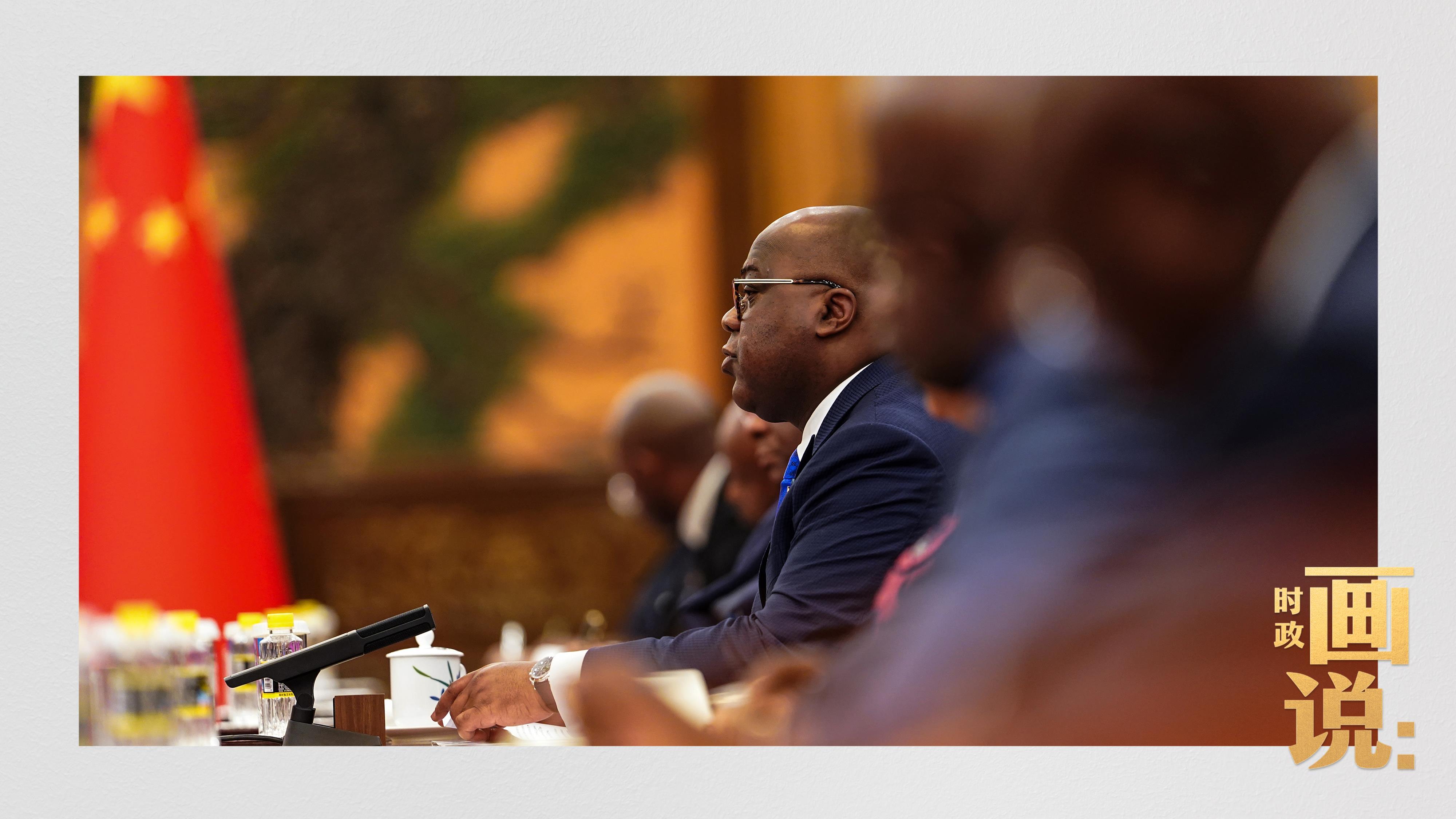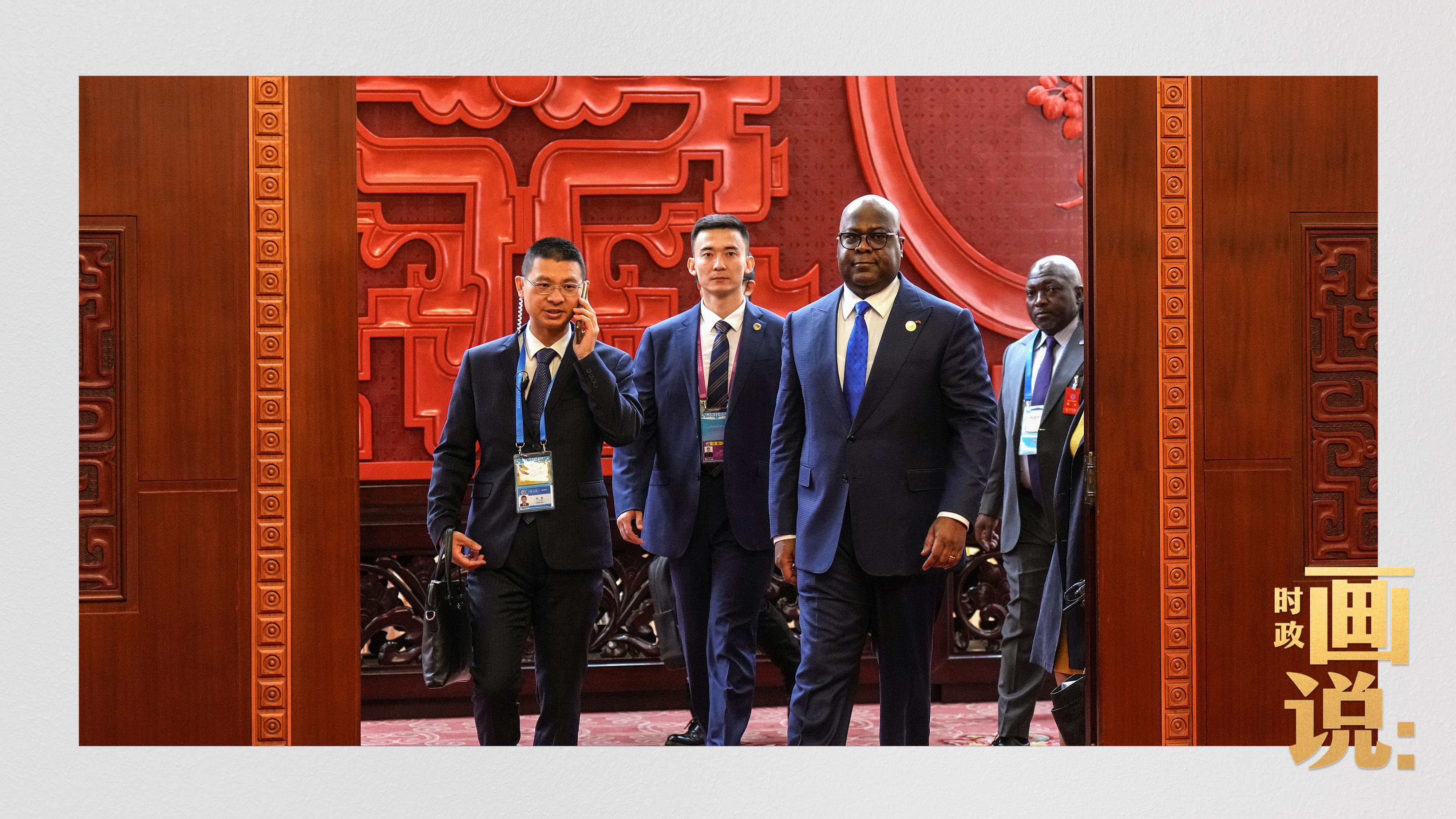 △刚果(金)总统齐塞克迪走向会见厅,这是习近平主席在峰会期间举行的首场双边会见。