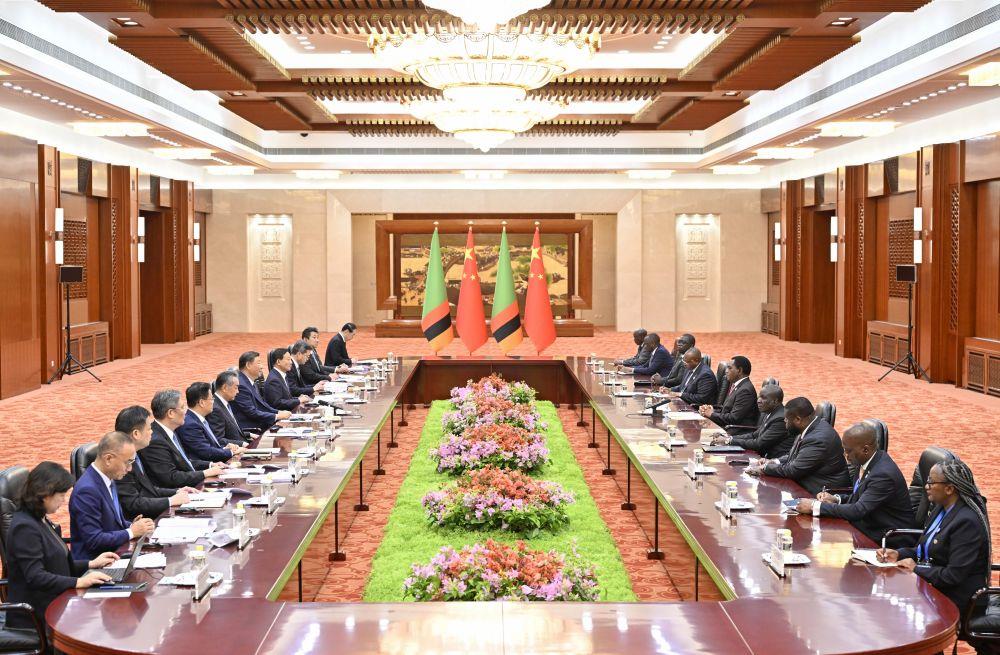 希奇莱马表示,我此次访华所到之处均受到热情友好接待,收获了很多有益经验。非方钦佩中国发展取得的伟大成就,祝贺中共二十届三中全会成功召开,希望学习借鉴中国成功经验,为非洲人民带来更多福祉。此次中非合作论坛北京峰会恰逢其时。我去年访华以来,两国合作又取得许多重要进展,很高兴刚才同习近平主席共同见证重新激活坦赞铁路,延续两国老一辈领导人缔造的友谊,打造非中互联互通新通道。赞方坚定恪守一个中国原则,愿全面深化对华合作,不断提升两国全面战略合作伙伴关系水平,欢迎更多中国企业赴赞投资。中方致力于劝和促谈,为促进全球和平稳定发挥了重要建设性作用。赞方赞赏中方在国际事务中展现的杰出领导力,愿同中方密切多边协作。