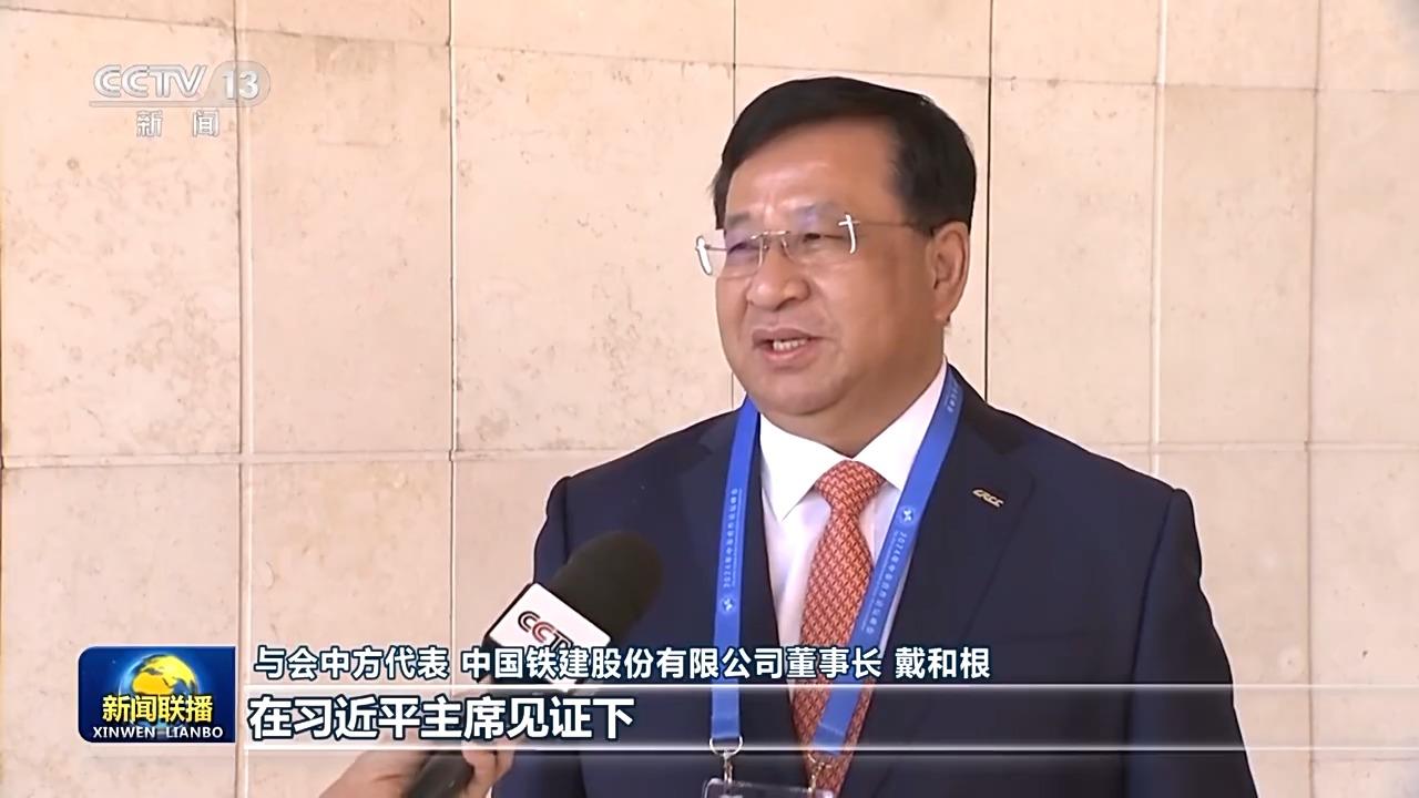 与会中方代表、中国铁建股份有限公司董事长 戴和根:在习近平主席见证下,签署了坦赞铁路激活的备忘录。作为当年修建坦赞铁路的企业,我们更加有这样一个情怀去赓续中非友谊。