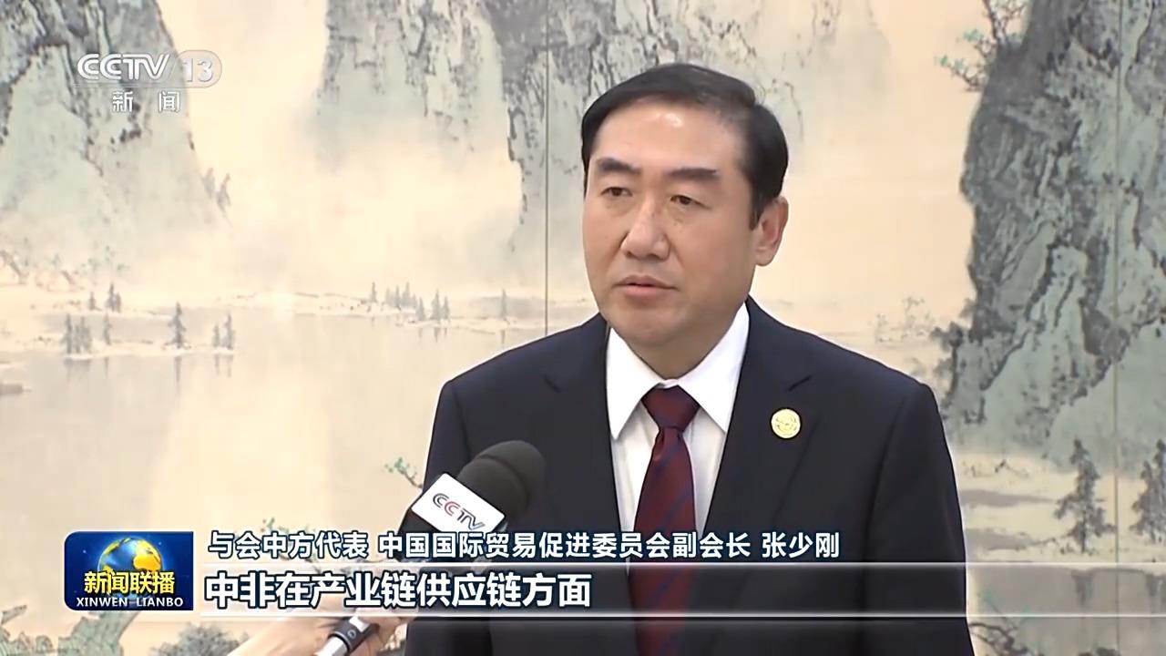 与会中方代表、中国国际贸易促进委员会副会长 张少刚:中非在产业链供应链方面具有极强互补性。中国贸促会将用好中国国际供应链促进博览会等合作平台,促进中非经贸合作高质量发展,推动中国大市场成为非洲大机遇。