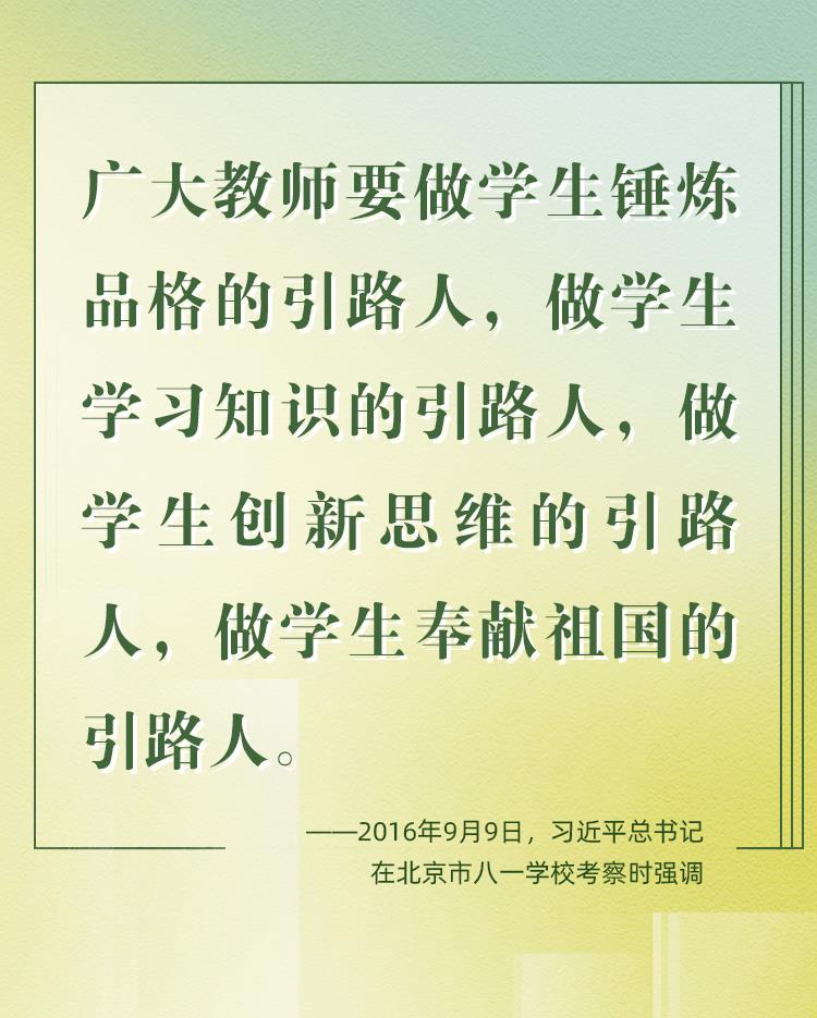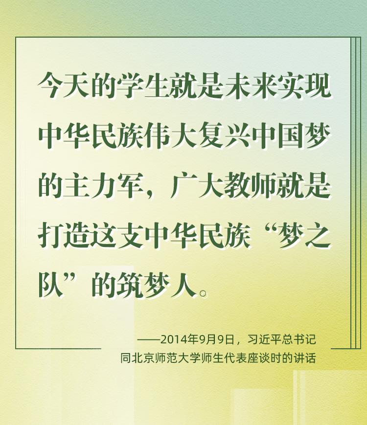 教师是立教之本、兴教之源。2024年9月10日,是我国第40个教师节。党的十八大以来,习近平总书记始终高度重视教师队伍建设,立足实现中华民族伟大复兴中国梦、打造中华民族“梦之队”筑梦人的特殊历史使命,对教师相继提出了“四有好老师”“四个引路人”“四个相统一”“大先生”等殷切期望和明确要求。