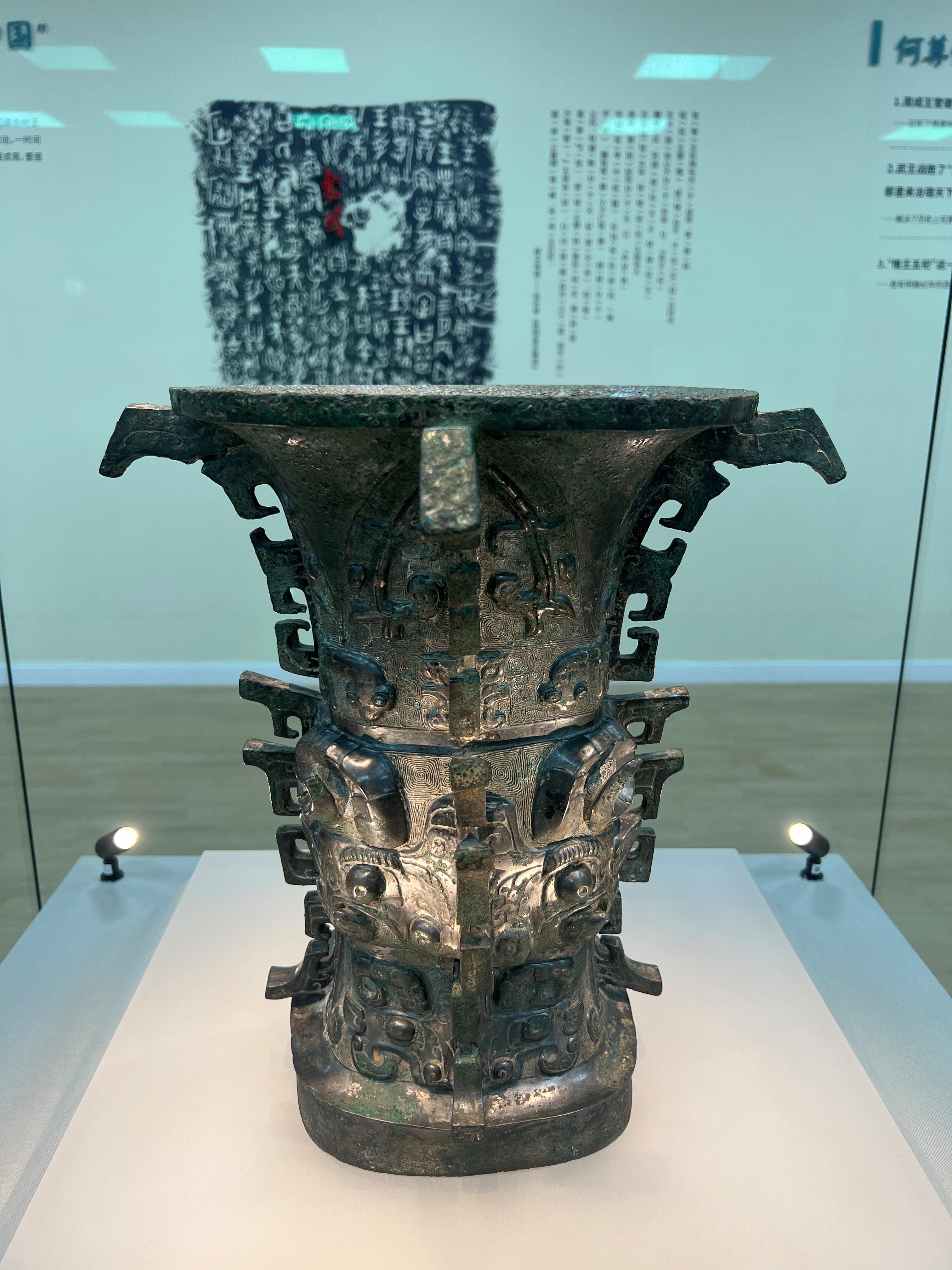 陕西宝鸡青铜器博物院内,一件造型浑厚、工艺精美的西周早期青铜酒器——“何尊”熠熠生辉。尊内底铸有铭文122字,记载了武王灭商、周成王营建成周的史实。其中的“宅兹中国”字样,是目前发现“中国”二字最早的文字记载。