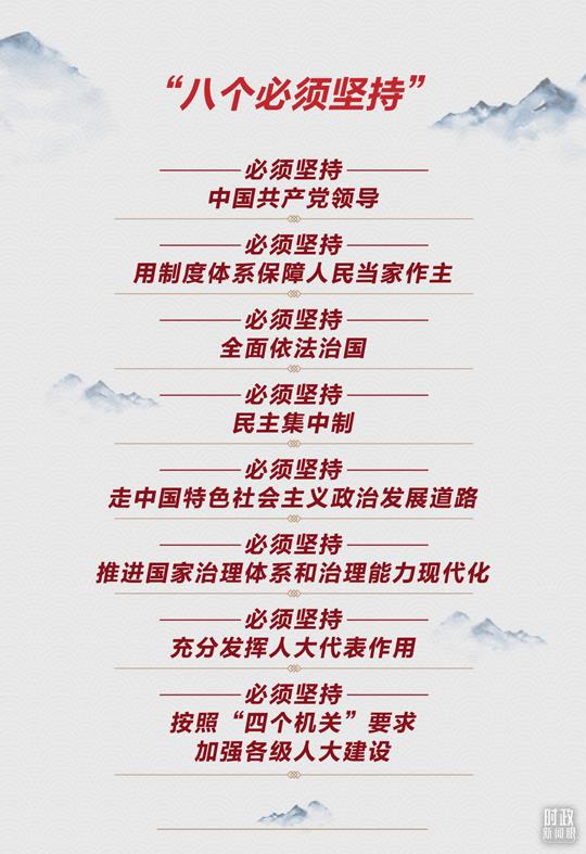 在今年这次大会上,总书记用“八个必须坚持”系统总结新时代人民代表大会制度理论和实践创新重大成果。