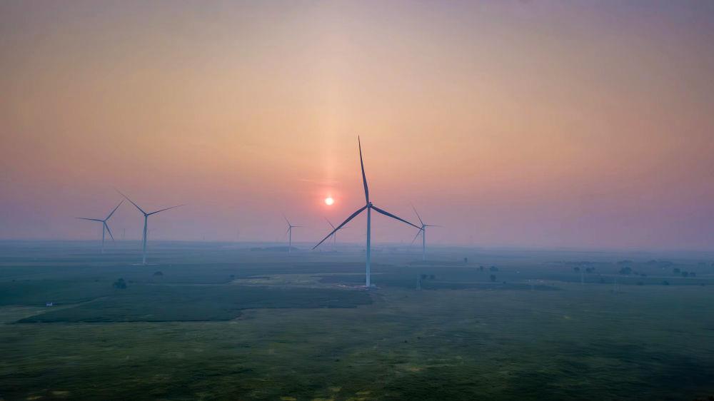 科尔沁大草原上,牛羊健硕。蓝天白云下,一排排巨型“风车”缓缓旋转,在古老草原上勾勒出现代的“天际线”。这里是内蒙古通辽市238万千瓦风电基地。