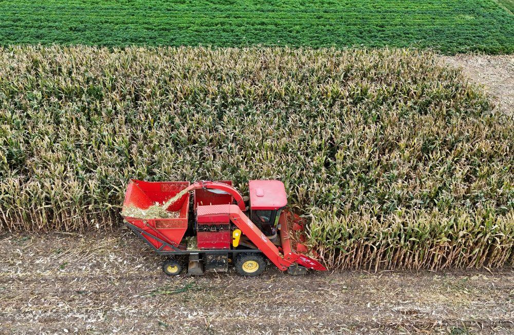 【实践故事】中秋节下午,轰鸣声从黑龙江省双鸭山市集贤县升昌镇一处玉米地传来,收割机将一穗穗浆水充盈的玉米收入“囊中”。