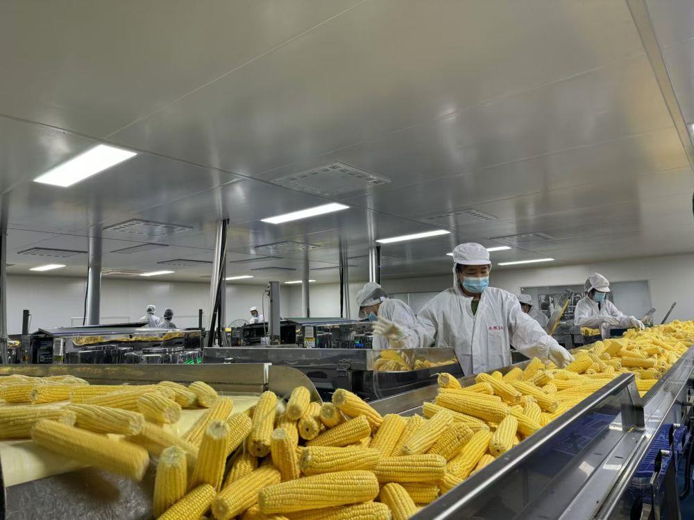 合作社开办的鲜食玉米加工车间中,收获的玉米经过脱皮、挑选运送到车间,再经过清洗、蒸煮、包装等环节,做成鲜食玉米销往全国各地。