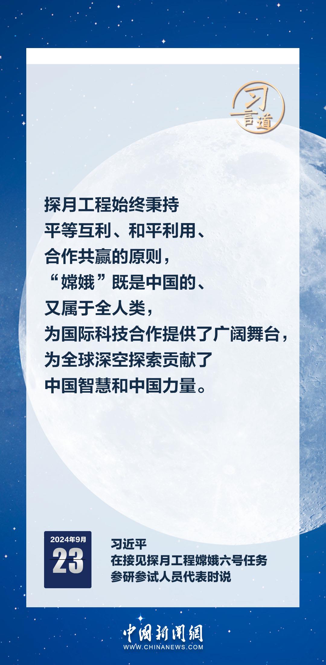 中共中央总书记、国家主席、中央军委主席习近平23日在人民大会堂接见探月工程嫦娥六号任务参研参试人员代表时发表重要讲话。习近平指出——
