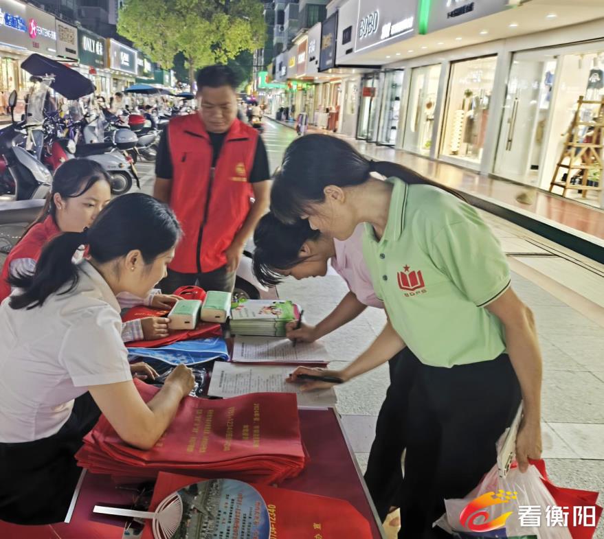 “互动式”问答。“走过路过不要错过,公众安全感调查上线啦,大家快来参与!”9月26日,云集街道平安法治办联合禁毒办、网格员、“衡阳群众”志愿者,在衡南县商业步行街打造“平安小摊”,向群众普及禁毒、反诈、防性侵等知识,为“夜经济”增添“平安底色”。活动现场,工作人员化身“摊主”和“推销员”,一边讲解一边“销售”,群众通过你问我答等方式参与平安建设知识学习,领取印有平安建设标语的宣传折页、手提袋等,最大限度地让大家把平安建设知识记在脑中、放在心上、带回家里。