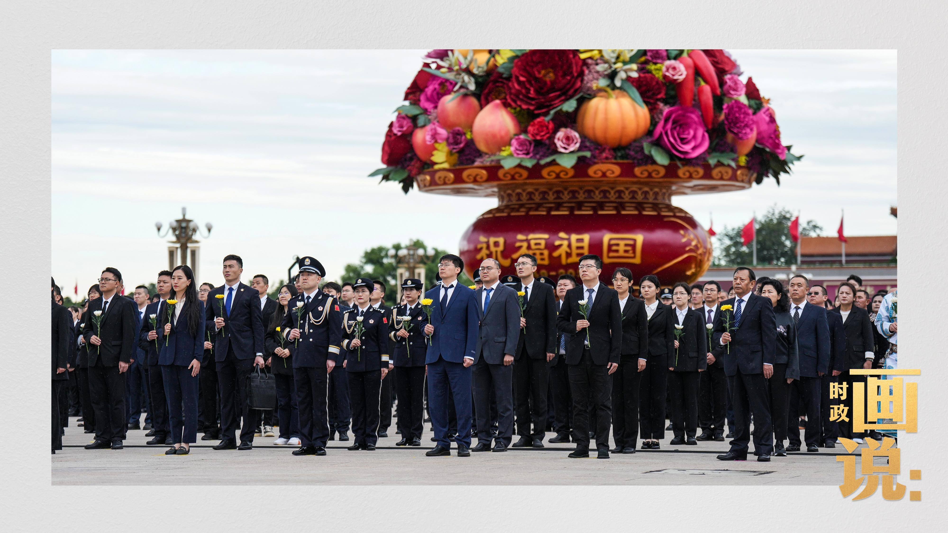 烈士纪念日向人民英雄敬献花篮仪式9月30日上午在北京天安门广场隆重举行。党和国家领导人习近平、李强、赵乐际、王沪宁、蔡奇、丁薛祥、李希、韩正等,同各界代表一起出席仪式。