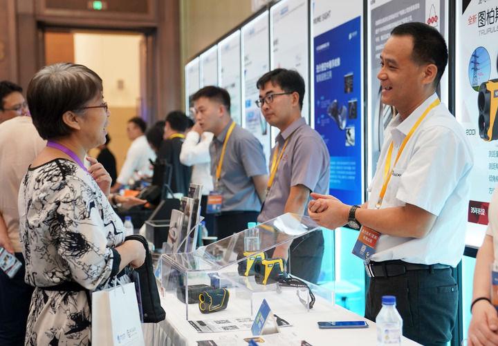 2024年8月8日,在上海举行的第七届进博会技术装备、汽车展区展前供需对接会现场,展商工作人员(右)向采购商介绍企业产品。新华社发(陈浩明 摄)