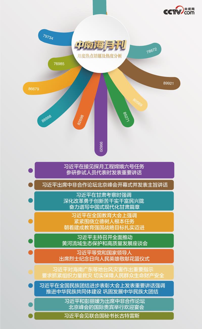 9月,中非深化团结合作、携手推进现代化“双向奔赴”,标注下共筑人类命运共同体的“全球南方时刻”。在央视网“智闻”系统提取分析的9月全网时政新闻热点中,处处体现着汇聚梦想、激荡信心的生动局面。