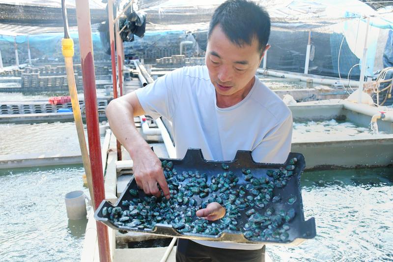 走进福建东山县陈城镇澳角村鲍鱼养殖户郭汉栋的养殖场,新苗池与成品鲍鱼苗池在两侧排开,养殖池智慧控制系统正在高效运转。这些年,郭汉栋的鲍鱼苗卖到了闽北、浙江等地,育苗收入稳步增长。