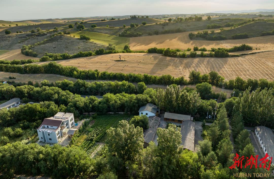 在傍晚,从木垒书院的后山坡爬上去,视野开阔。深厚的黄土覆盖着丘陵,成峰、成梁、成坡、成沟,起伏得颇有韵律。夕阳下,群山叠翠流金。一垄垄的麦田里,收割机奋力爬坡收麦子,麦香铺天盖地。随手拍下一张照片,都有油画般的质感。