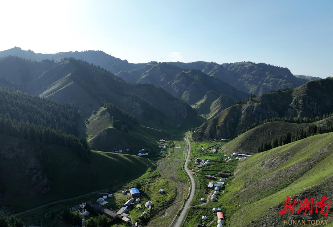 7月18日,新疆维吾尔自治区和布克赛尔蒙古自治县,一个个蒙古包宛如草原珍珠。(本版照片均由湖南日报全媒体记者 易昂 摄)