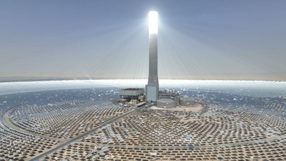 这是阿联酋迪拜马克图姆太阳能公园四期光热光伏综合发电项目现场(2024年9月2日摄,无人机照片)。该项目是中国和阿联酋共建绿色丝绸之路重点合作项目,今年2月,项目所有发电机组均已实现并网发电并投入商业运行。