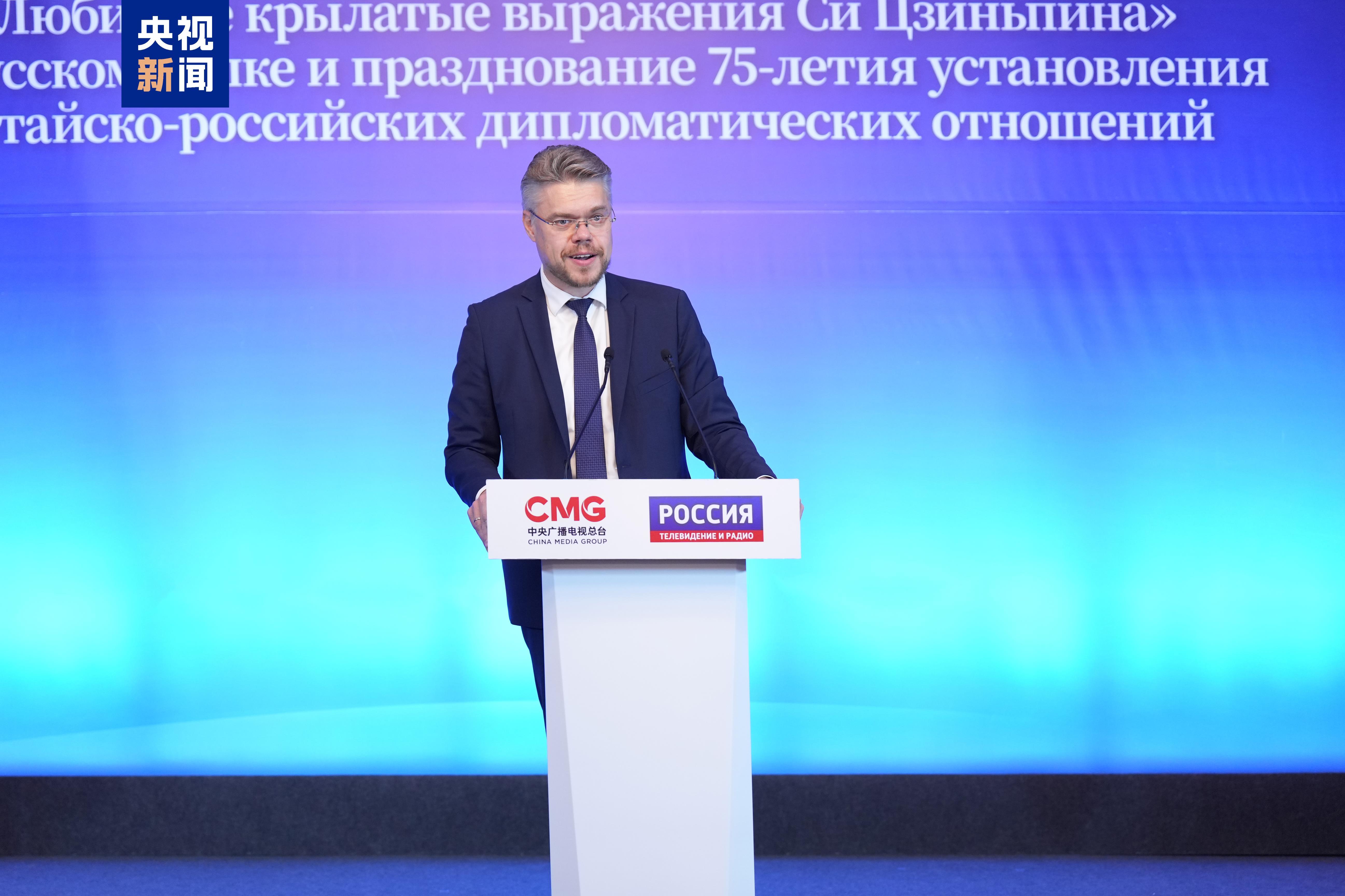 慎海雄表示,举世瞩目的中国共产党二十届三中全会,擘画了中国进一步全面深化改革的宏伟蓝图,也为中俄两国深化人文交流提供了广阔空间。人文交流贵在思想的彼此交汇和文化的相互吸引。中央广播电视总台精品节目《平“语”近人——习近平喜欢的典故》第三季(俄语版)在俄主流媒体播出,生动展现习近平主席广博厚重的文化底蕴和人民至上、家国天下的深厚情怀,提炼阐释中华文明的独特精神标识、新时代内涵和全球化价值,为大家读懂习近平主席治国理政智慧、读懂中华文化和中国精神,领略中国式现代化的壮美宏阔,打开一扇思想之窗。总台将一如既往,做中俄友谊的记录者、讲述者和推动者,愿与俄罗斯各界携手,厚植人文沃土、深耕中俄友谊,助力构建人类命运共同体。