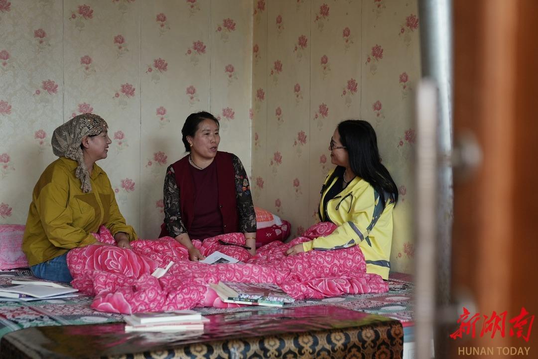 6月6日,马金莲(右)和农民女作家杨秀琴(中)、马文菊畅谈文学。