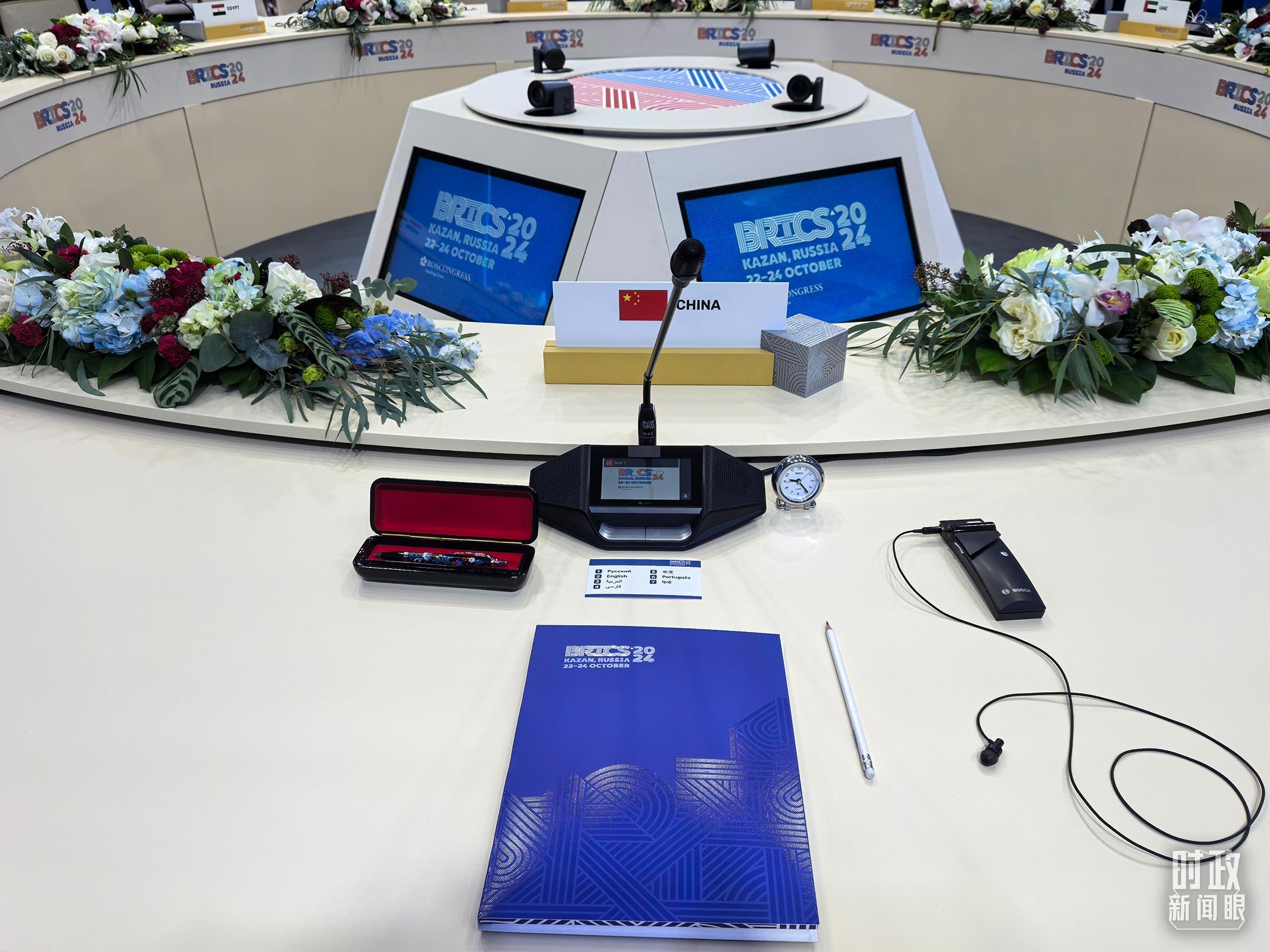 会场内,洁白的会议桌围成同心圆。整齐摆放的同声传译机提供7种语言翻译。金砖国家领导人围桌而坐,在大小范围两轮会议中深入沟通,共商“大金砖合作”新蓝图。