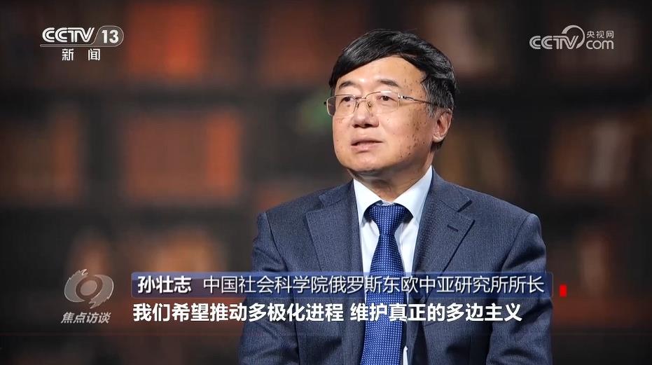 孙壮志:“我们希望推动多极化进程,维护真正的多边主义。现在这个百年变局,世界进入到了动荡变革期,人类社会面临选择,到十字路口,这种情况下通过金砖的努力,让未来世界能够朝着对世界各国来说更加公平的方向发展。我们讲多极化加定语,叫平等、有序的多极化,可以借助金砖这样强大的力量去推动。”