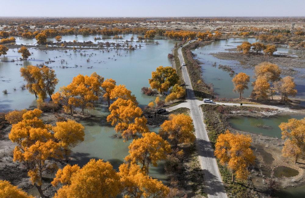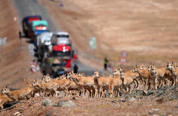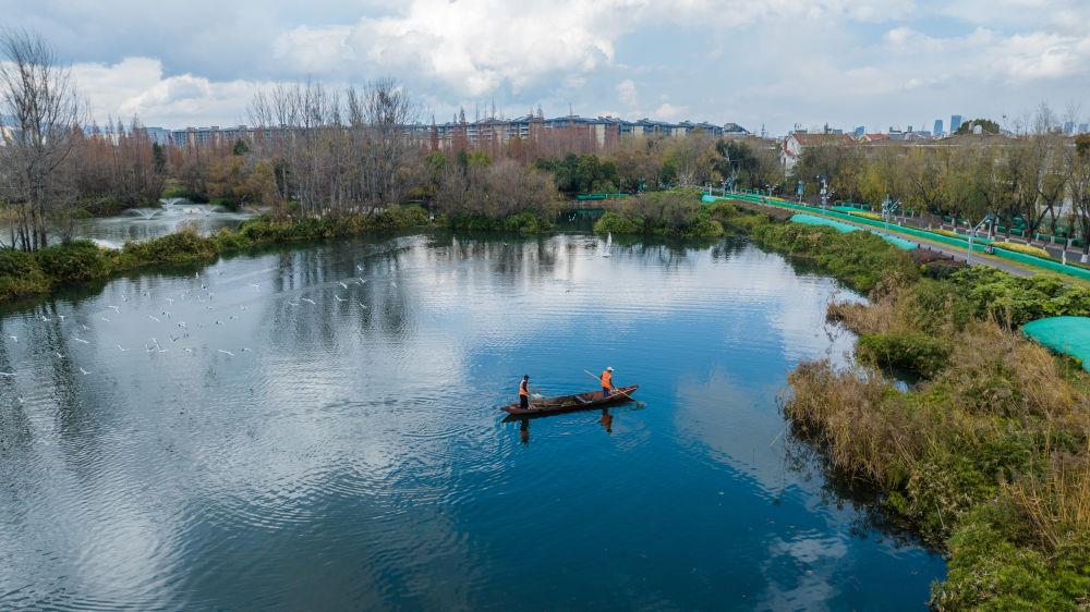 在雅鲁藏布江中游河谷黑颈鹤国家级自然保护区,黑颈鹤飞翔在一片水域上空(2024年3月17日摄)。多年来,西藏各级党委政府和对口援藏省市接续投入2.4亿余元资金开展生态建设,创设的雅江北岸南木林生态示范区已完成造林4万多亩,昔日戈壁荒滩渐变江畔绿洲,也成了黑颈鹤越冬的理想栖息地。监测数据显示,西藏境内的黑颈鹤种群数量持续增长,已由上世纪的不足3000只增长到目前的1万余只。 这是2024年10月18日拍摄的青海湖二郎剑景区一角(无人机照片)。据青海湖景区保护利用管理局统计,目前青海湖水质优良率达100%,草地综合植被盖度达60%,湿地保护率达69%,近10年来水体面积及水位递增趋势明显。 2023年5月29日,当地管理部门工作人员在青藏公路上临时截停来往车辆,为一群前往可可西里卓乃湖产仔的藏羚羊让路。可可西里地处三江源国家公园,是国家一级保护动物藏羚羊重要的栖息地。每年5月至7月,来自青海三江源、新疆阿尔金山、西藏羌塘的雌性藏羚羊会迁徙到可可西里卓乃湖,待产仔后再携幼仔返回原栖息地。 这是2023年7月6日拍摄的甘肃省甘南藏族自治州玛曲县阿万仓湿地景色(无人机照片)。玛曲县是黄河上游重要的水源涵养区和生态功能区,被称为“黄河之肾”。多年来,甘肃省实施退牧还草、退化草原生态修复等治理工程,草原生态环境明显改善。 2020年3月6日,在甘肃省古浪县北部沙区旱麻岗治沙点,八步沙林场治沙人和群众一起扎草方格压沙(无人机照片)。第六次全国荒漠化和沙化调查结果显示,甘肃省荒漠化土地和沙化土地动态变化总体呈递减趋势,面积持续减少、程度持续减轻。与2014年相比,甘肃荒漠化土地总面积减少26.27万公顷,沙化土地总面积减少10.45万公顷。 2023年6月14日在内蒙古毛乌素沙地拍摄的当地牧民种植的一片树林(无人机照片)。2024年以来,内蒙古全面开展“三北”工程攻坚战,已完成防沙治沙面积约1954万亩,约为年度总任务1730万亩的113%,超额完成年度任务。 2024年8月26日在宁夏银川市永宁县拍摄的黄河岸段(无人机照片)。近年来,宁夏努力建设黄河流域生态保护和高质量发展先行区,全力打好黄河保护持久战,努力让“塞上江南”越来越秀美。 2024年5月30日,治沙工人在宁夏中卫市境内的腾格里沙漠铺设刷状网绳式草方格沙障。刷状网绳式草方格的生产效率比过去人工扎设草方格提高了60%以上,有效降低防沙治沙的工程成本,提高耐用性。半个多世纪以来,宁夏完成了对荒漠化的“逆袭”,实现了从“沙进人退”到“绿进沙退”的历史性转变。 2024年6月24日,在位于大熊猫国家公园卧龙片区内天台山的大熊猫第二阶段野化培训场外,工作人员给母熊猫“贤贤”投喂完食物后挥手向其告别。近年来,我国通过大力实施天然林保护、野生动植物保护和大熊猫国家公园建设等,保护大熊猫及其栖息地,成效显著。大熊猫野外种群总量已从20世纪80年代的约1100只增长到近1900只。 这是2023年6月26日在四川省宜宾市拍摄的三江口景色(无人机照片)。近年来,作为长江上游重要的生态屏障和水源涵养地,宜宾市大力实施长江综合治理项目,长江生态环境保护修复不断取得进展。 2022年4月11日在广西桂林市雁山区大埠乡黎家村拍摄的一处采石场(无人机照片)。经过生态修复,如今裸露的山体已经复绿。 2024年8月8日,“短鼻家族”和“然然家族”的野象在云南省西双版纳州景洪市大渡岗乡的泥塘里玩耍(无人机照片)。近年来,云南修复改造了一些大象栖息地,种植大象爱吃的植物,同时运用红外相机等技术手段,实现亚洲象位置信息的实时发布。 2024年1月16日,管护人员在滇池打捞杂物(无人机照片)。据昆明市滇池管理局介绍,2023年滇池全湖水质持续向好,自2018年上升为Ⅳ类水质后,连续六年保持全湖水质Ⅳ类。 2020年6月25日,游客在贵州省赤水竹海国家森林公园内游玩(无人机照片)。贵州近年来大力开展植树造林,2023年,省内森林覆盖率达62.81%。 2024年3月16日,游客在重庆广阳岛东岛头一带游览、休闲(无人机照片)。广阳岛是长江上游最大的江心岛。近年来,当地系统推进自然恢复、生态修复,丰富生物多样性。2024年,重庆广阳岛生态修复项目成功入选联合国“生态恢复十年”优秀案例。 2024年6月23日,市民在陕西省汉中市天汉湿地公园内运动休闲。汉江是长江的最大支流,是南水北调中线工程的重要水源。近年来,汉中市加强对汉江源头和沿岸湿地生态保护修复,构建人水和谐共生的美丽城市,确保“一泓清水永续北上”。 2023年11月4日拍摄的新疆尉犁县罗布淖尔国家湿地公园(无人机照片)。新疆沿塔里木河流域分布着约1500万亩胡杨林,是世界面积最大的胡杨林区。