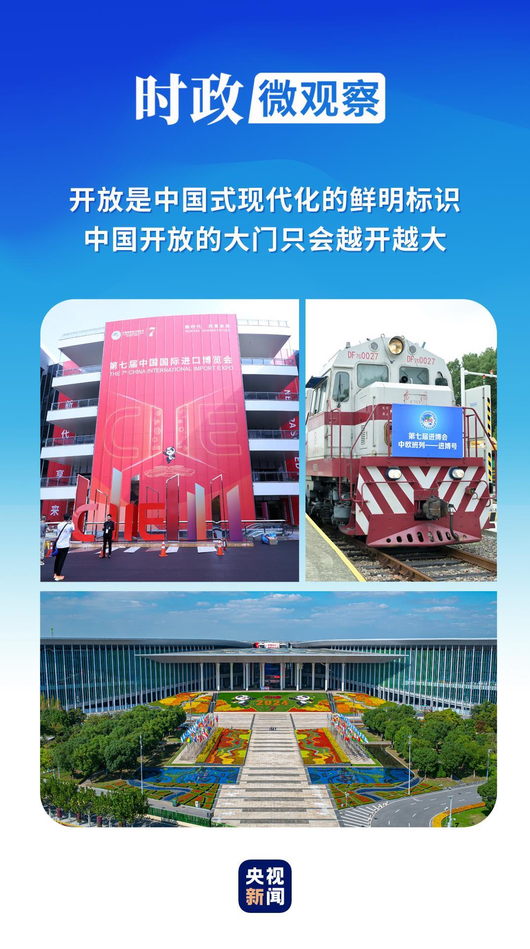 习主席指出,开放是中国式现代化的鲜明标识,中国开放的大门只会越开越大。从一扇“进博之窗”,可以看到中国推动构建开放型世界经济、让合作共赢惠及世界的诚意和胸怀,读懂当代中国的鲜明标识。