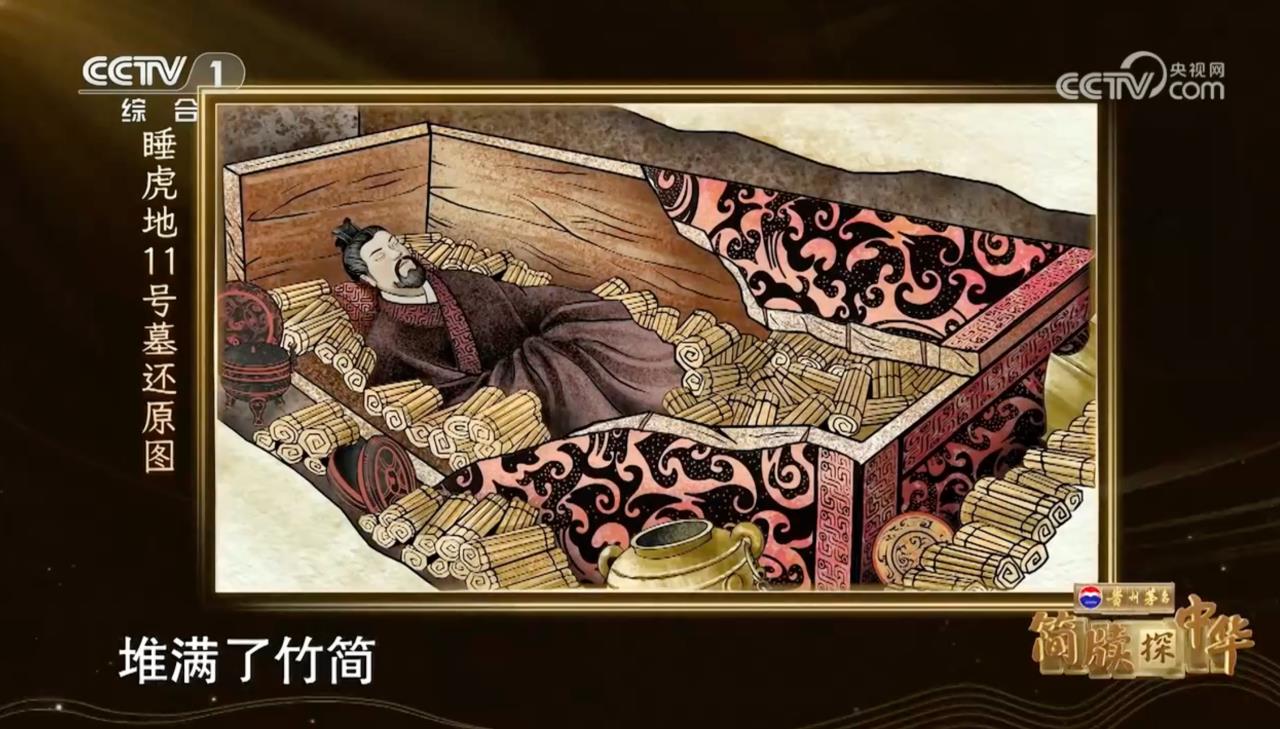 1975年底,考古学家在云梦县睡虎地发掘出12座战国晚期至秦代的墓葬。随着11号秦墓的开启,人们惊奇地看见,千余片竹简层层叠压,有序摆放在墓主人周围,竹简上的字迹清晰可见,这是中国考古史上首次发现的秦简。