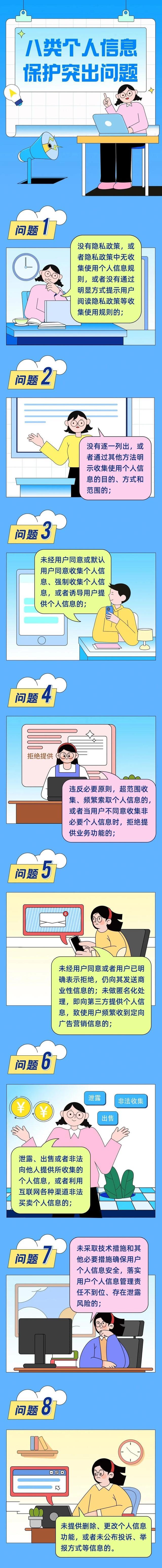 为保障个人信息安全,维护广大网民合法权益,湖南省互联网信息办公室、省市场监督管理局、省通信管理局自2024年10月至12月,针对移动互联网应用程序违法违规收集使用个人信息行为,开展“亮剑湖湘·消费领域个人信息权益保护”专项执法行动。聚焦餐饮外卖、房屋租售、商超购物、停车约车等社会关注度较高、个人信息被滥用和过度索取乱象突出的四类消费场景,重点整治八类个人信息保护突出问题。