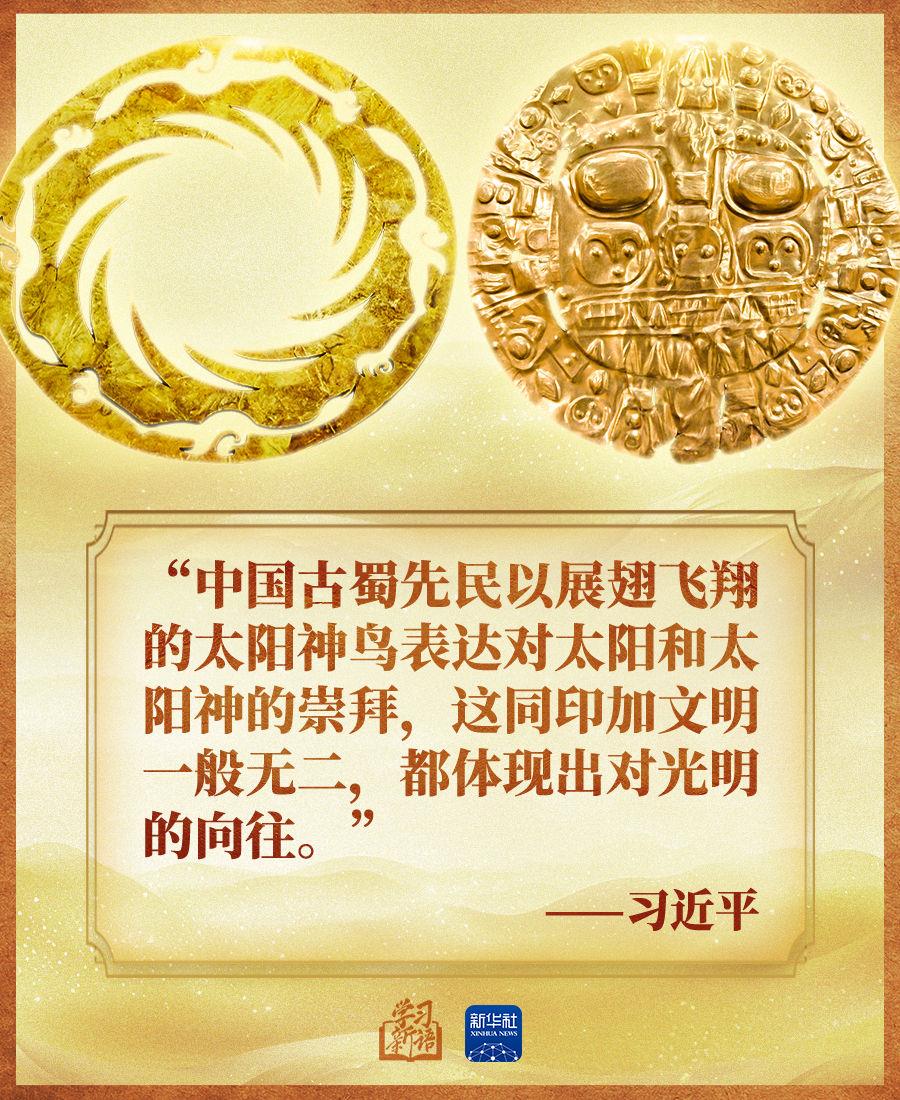“中外考古学界认为,中华文明和美洲文明实际上是同一祖先的后代在不同时代、不同地点的产物。文明的智慧让我们理念相近、心灵相通。”