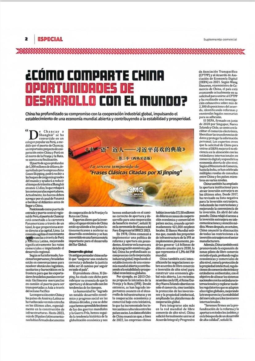 △《秘鲁人报》刊发文章《<平“语”近人>专题片播出 更好地了解中国——秘鲁各大媒体播出新一季片集》