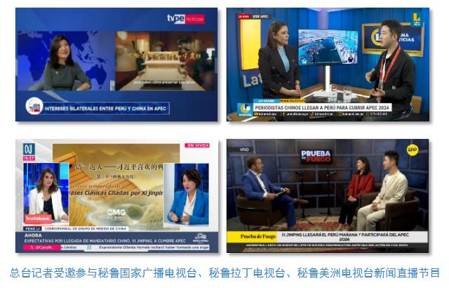 中央广播电视总台记者受邀参与秘鲁国家广播电视台、秘鲁拉丁电视台和当地收视率最高的秘鲁美洲电视台新闻直播节目,介绍《平“语”近人——习近平喜欢的典故》第三季(西班牙语版)内容,带领当地受众感悟习近平主席用典中蕴含的中国智慧。