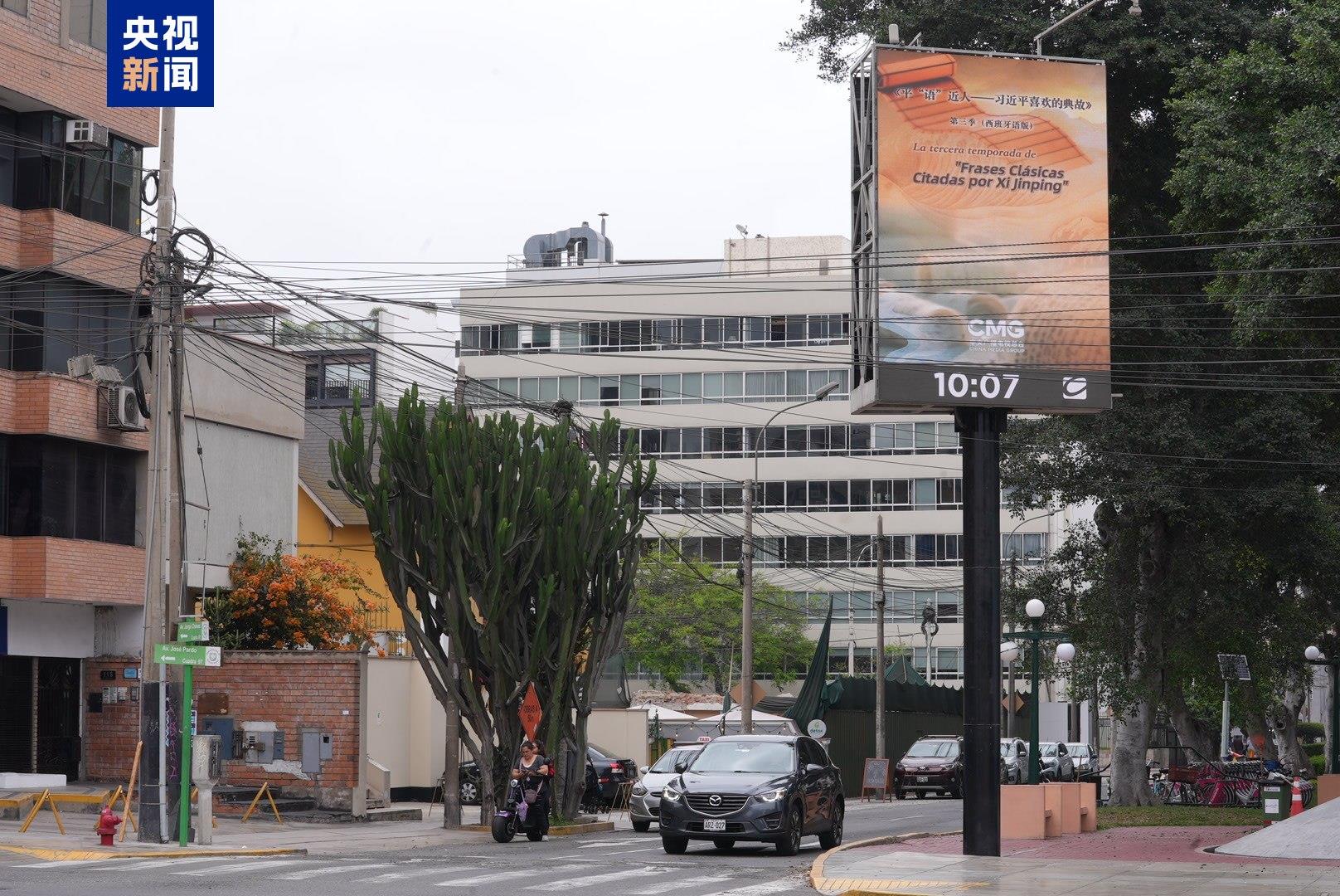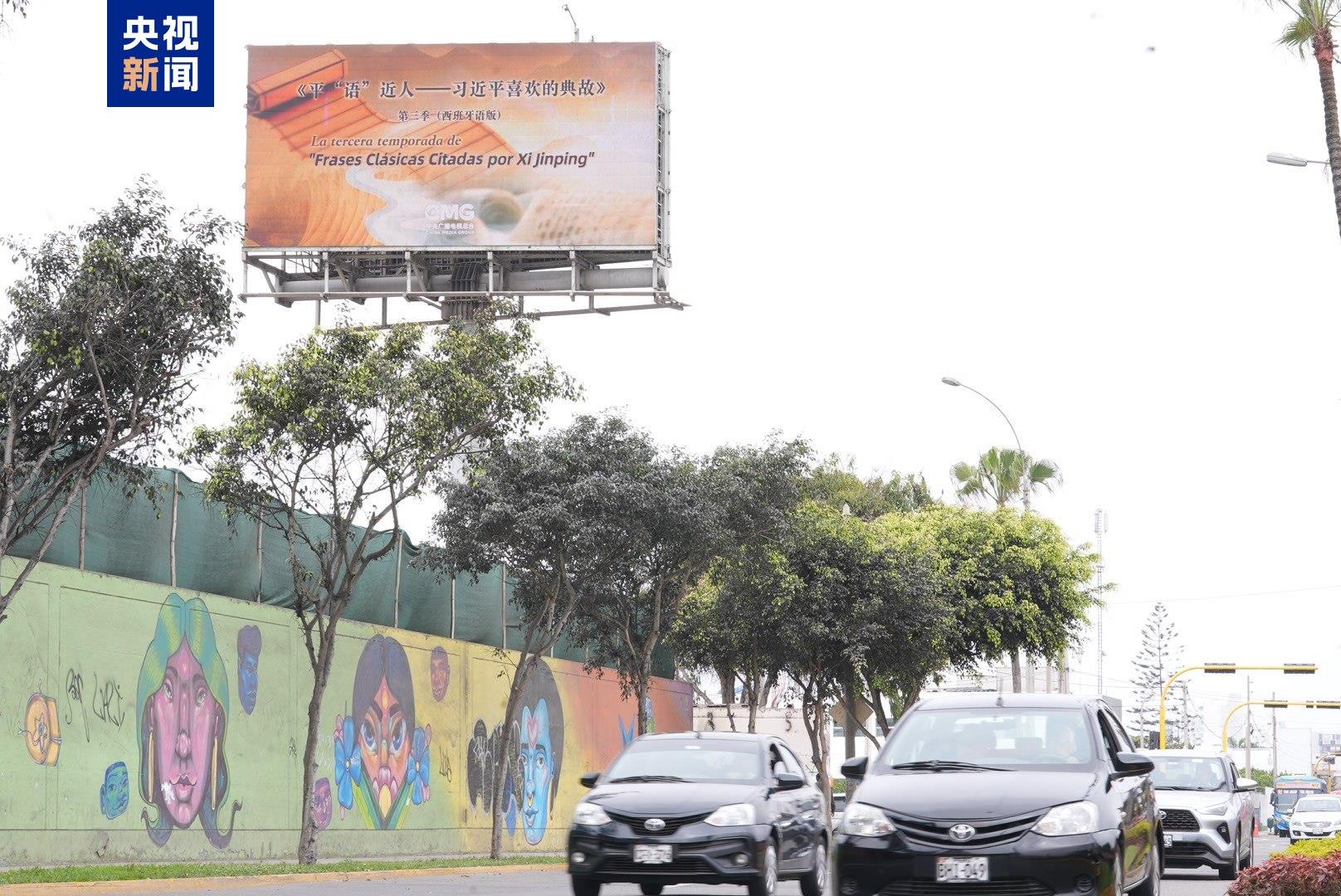 11月14日起,《平“语”近人——习近平喜欢的典故》第三季(西班牙语版)宣传片在利马地标建筑户外大屏、利马国际机场至市中心沿路户外大屏滚动播放。秘鲁各界人士对节目落地播出表示期待,认为这将为秘鲁民众了解中国领导人治国理政思想、领略中国式现代化的壮美宏阔打开思想之窗。
