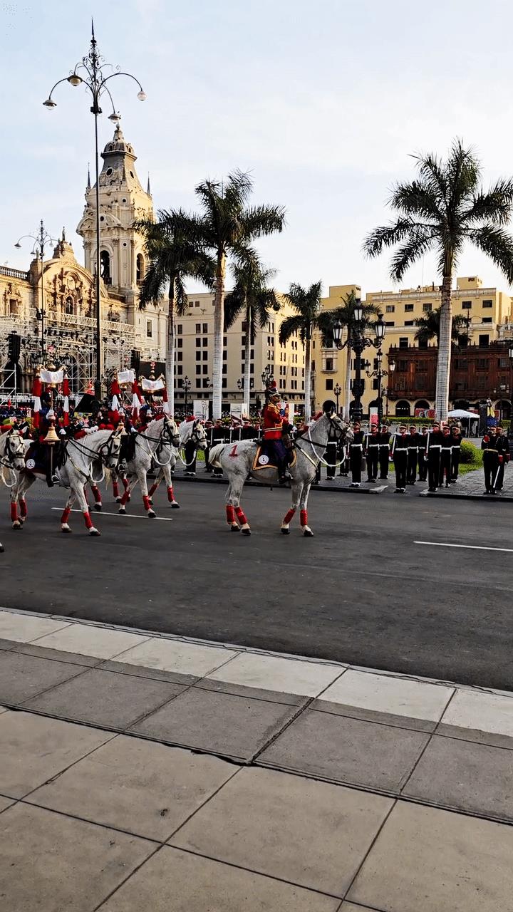 当地时间11月14日下午,国家主席习近平同秘鲁总统博鲁阿尔特举行会谈。在秘鲁礼宾马队护卫下,习近平乘车抵达总统府,受到博鲁阿尔特总统热情迎接。博鲁阿尔特在总统府前广场为习近平举行隆重盛大欢迎仪式。