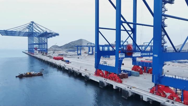 当地时间11月14日晚,习近平主席同博鲁阿尔特总统在利马总统府以视频方式共同出席钱凯港开港仪式。