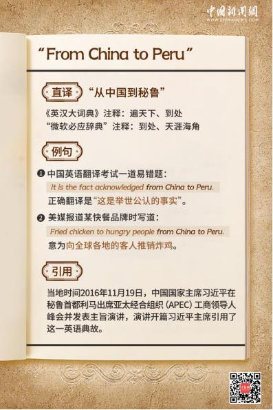 中新网11月16日电 题:“从中国到秘鲁”,习主席曾引用的这一典故,有何深意?