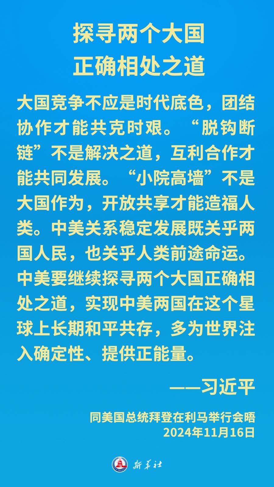 当地时间11月16日下午,习近平主席在秘鲁利马出席亚太经合组织领导人非正式会议期间应约同美国总统拜登举行会晤。就中美关系发展,习近平主席阐明中方立场——
