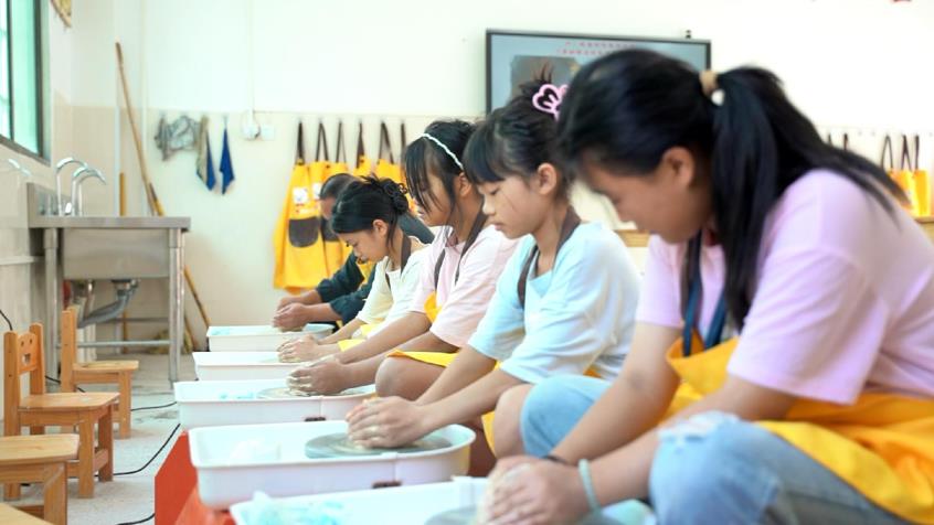 衡南县茶市联合学校的孩子正在上陶艺课(资料图)。新华网发(衡阳日报社 王翟 摄)