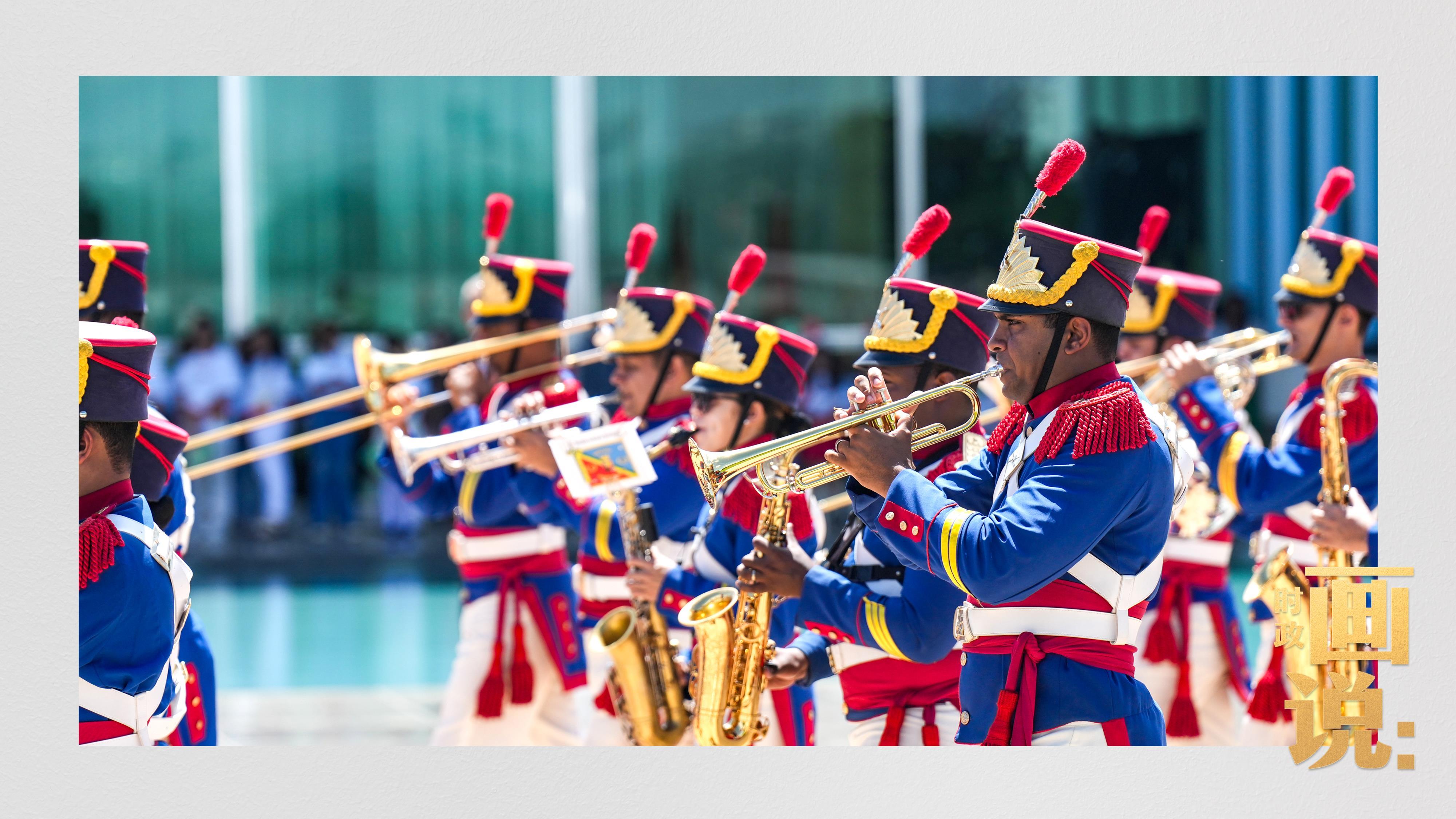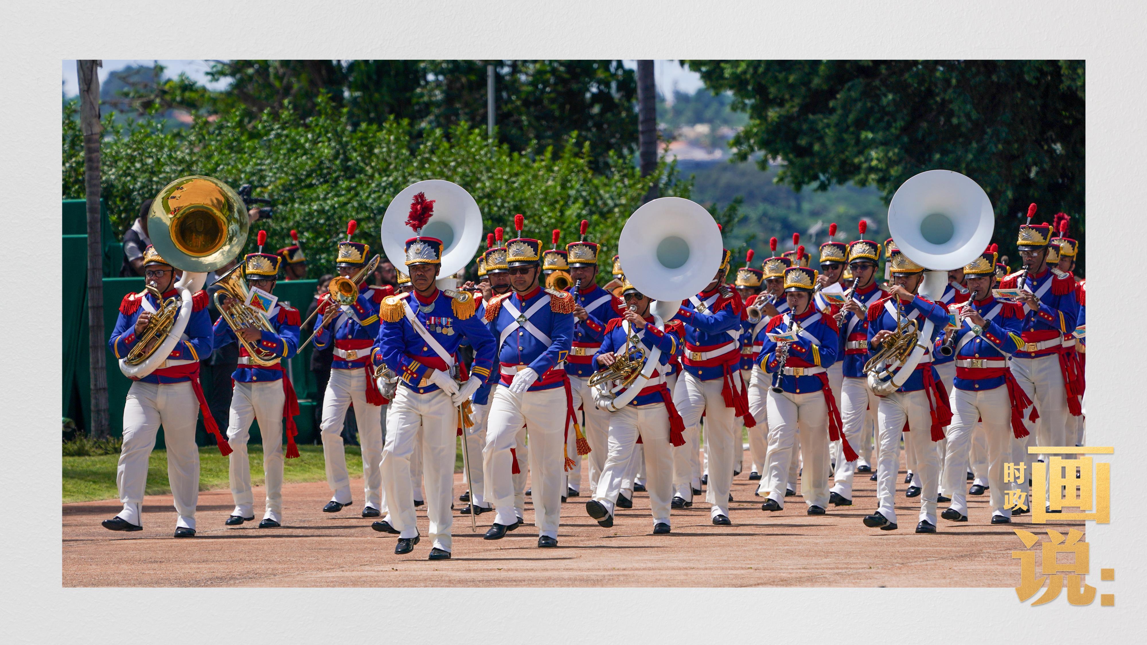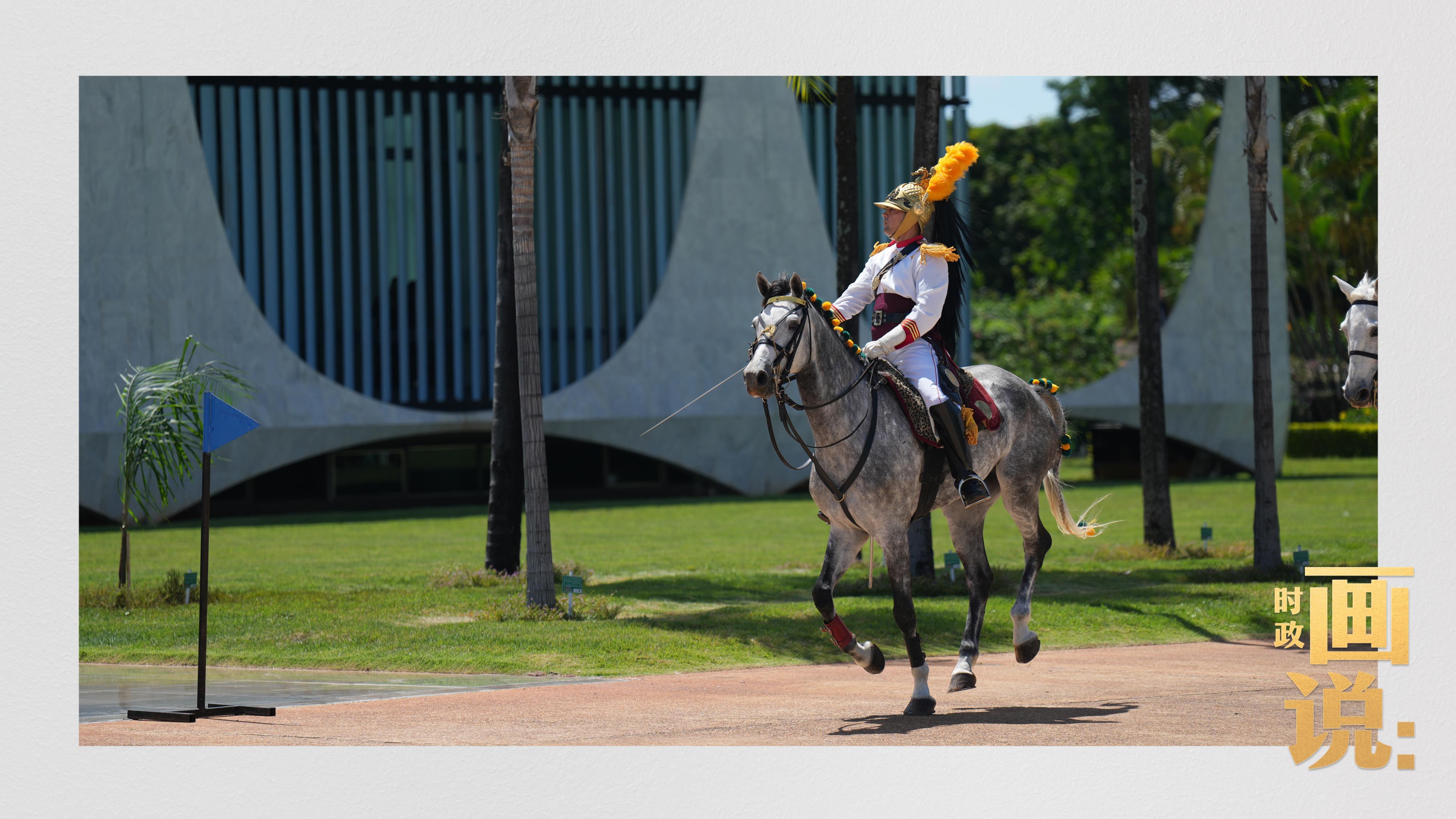 骑兵护卫习近平主席专车抵达仪式现场,巴西艺术家用中文深情唱响中国经典民歌《我的祖国》,现场气氛隆重热烈。