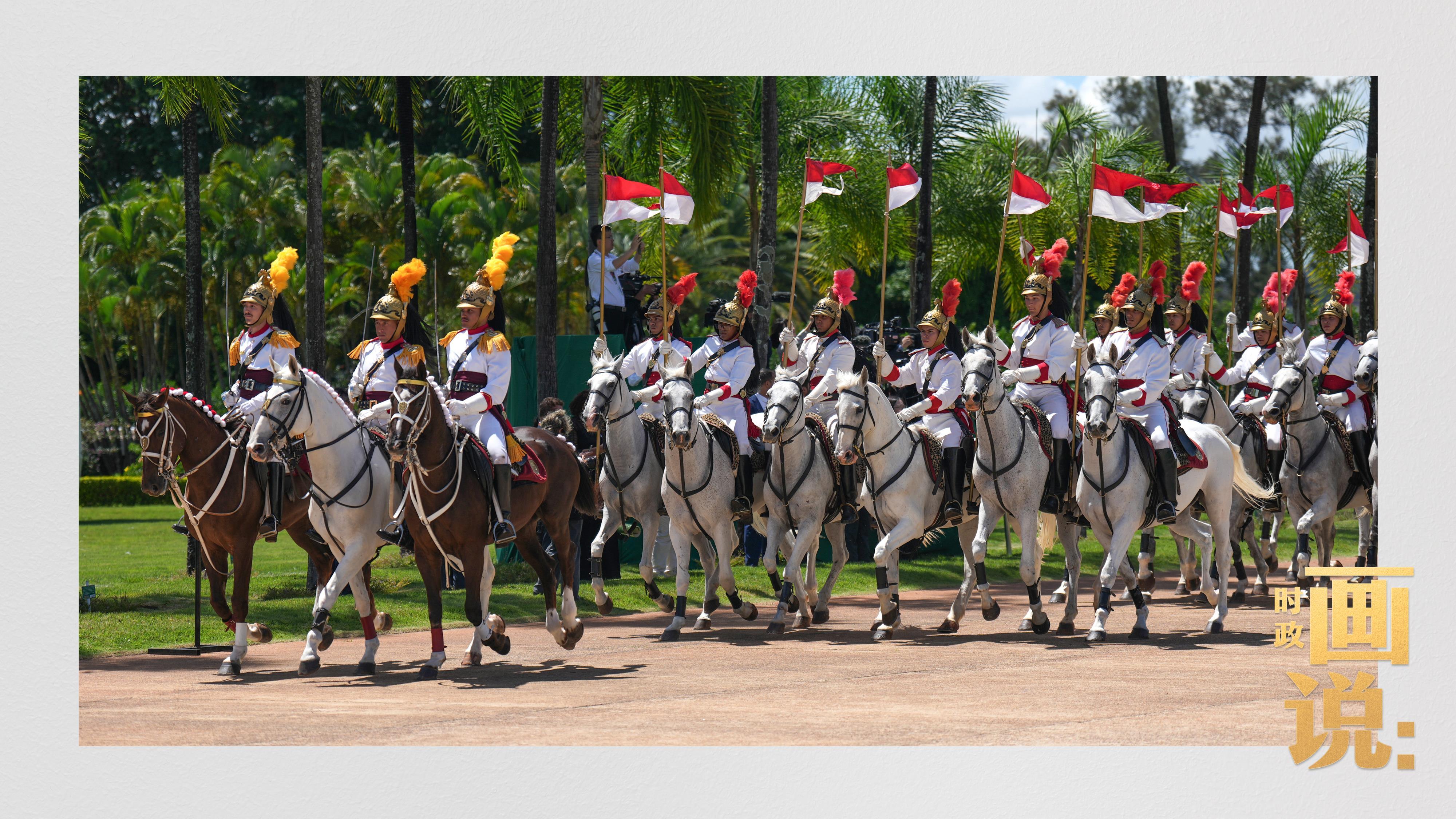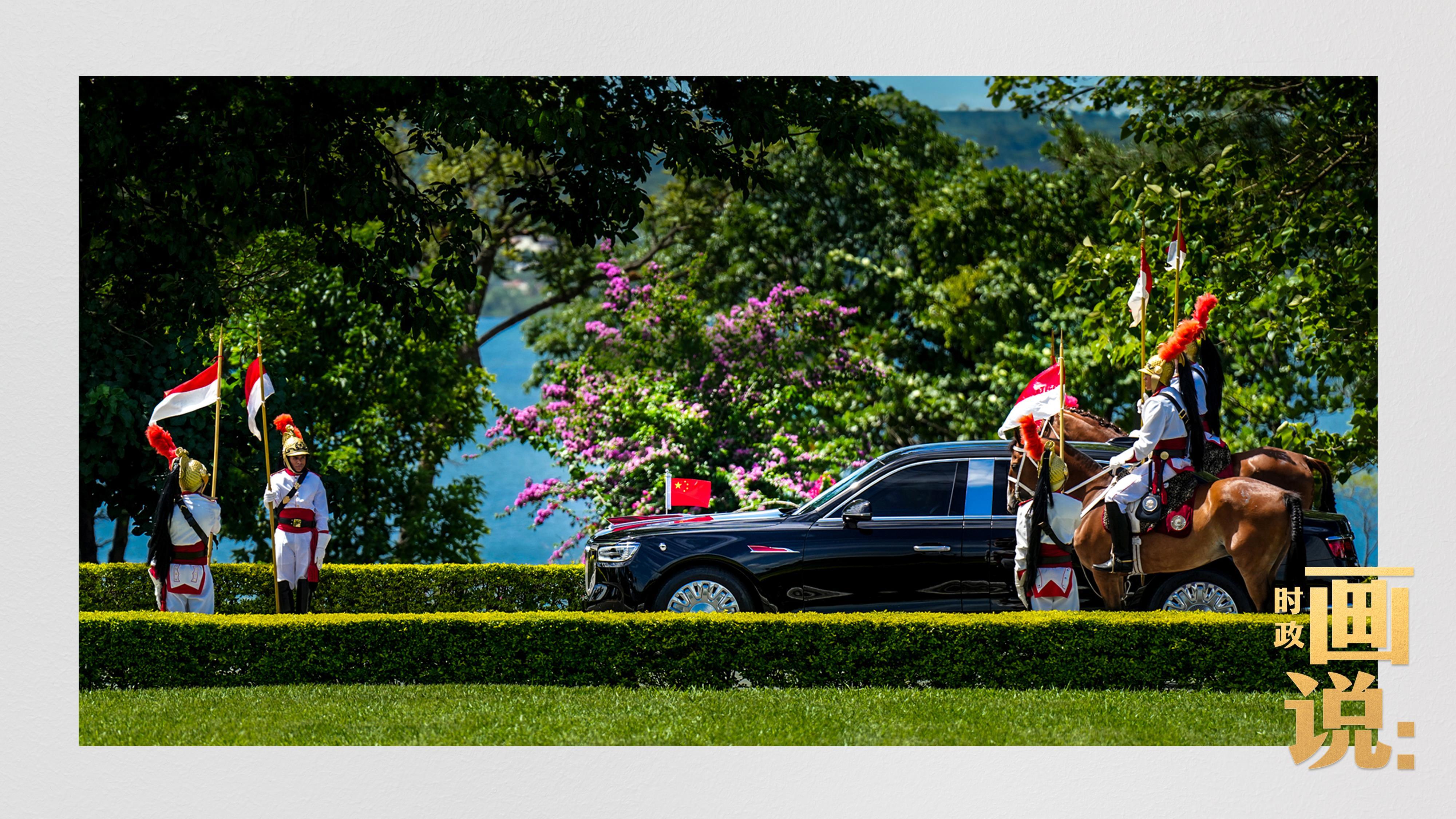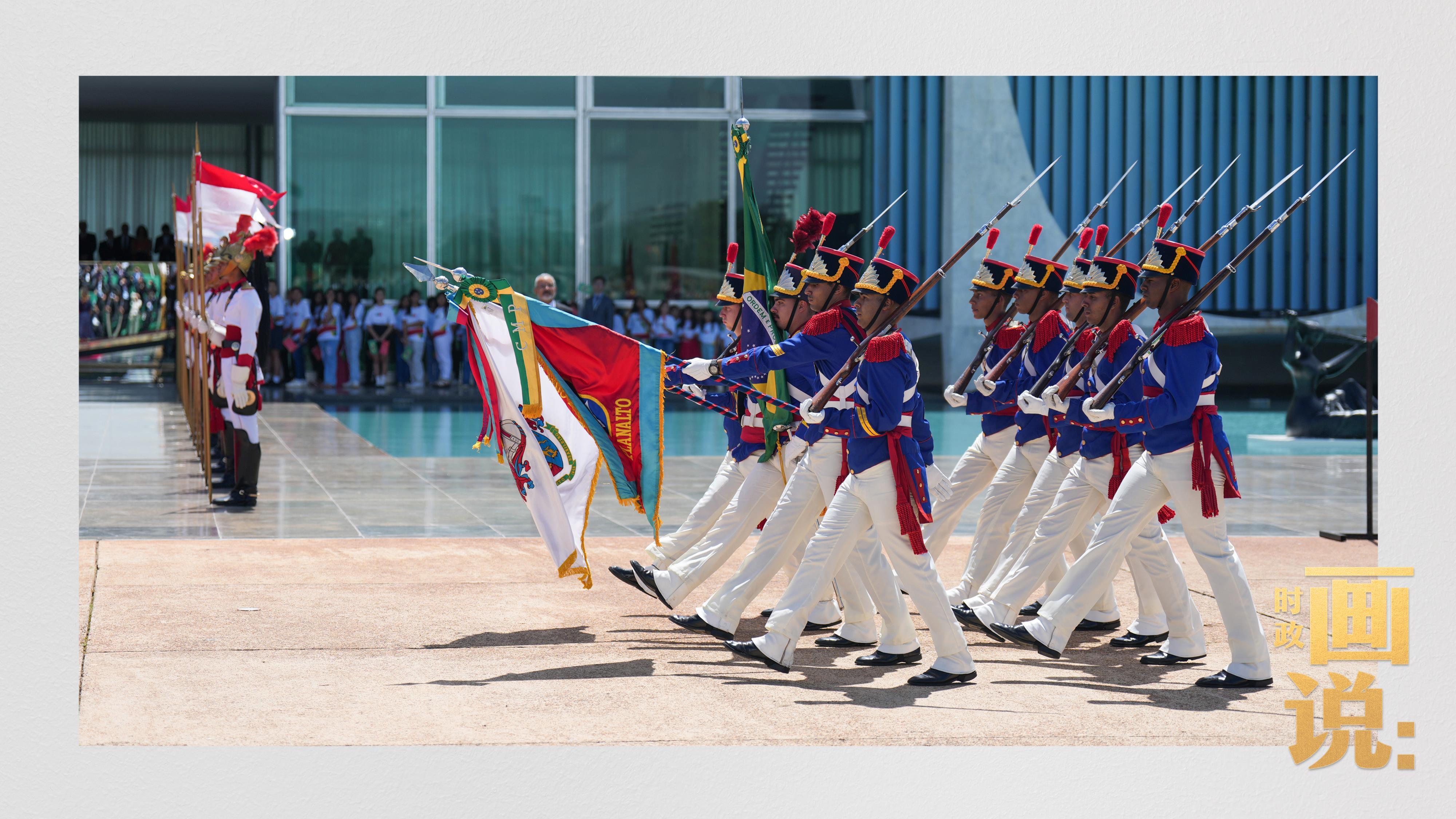 骑兵护卫习近平主席专车抵达仪式现场,巴西艺术家用中文深情唱响中国经典民歌《我的祖国》,现场气氛隆重热烈。