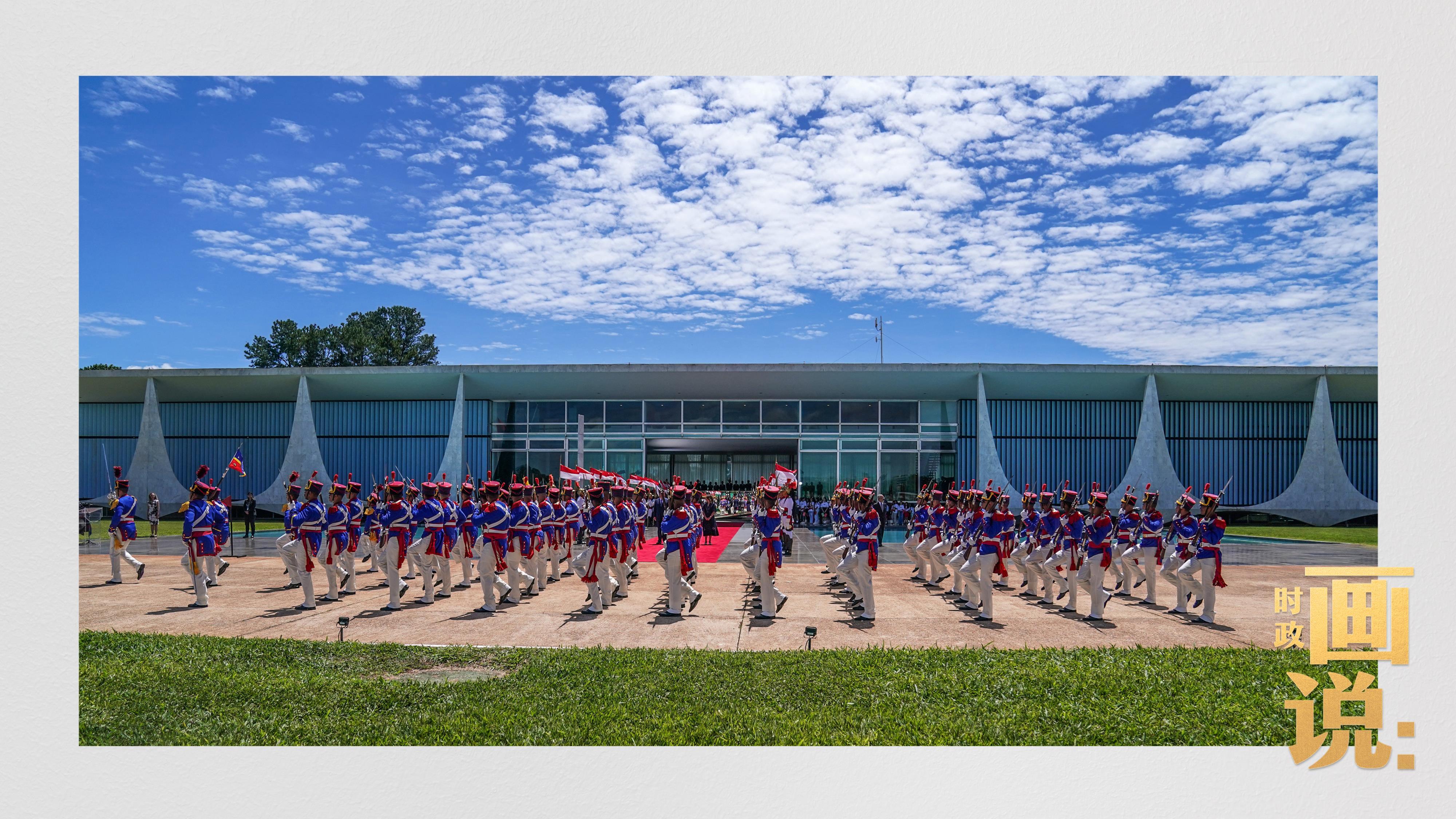 当地时间11月20日,习近平主席乘车抵达位于巴西利亚的巴西总统官邸,出席卢拉总统举行的欢迎仪式。