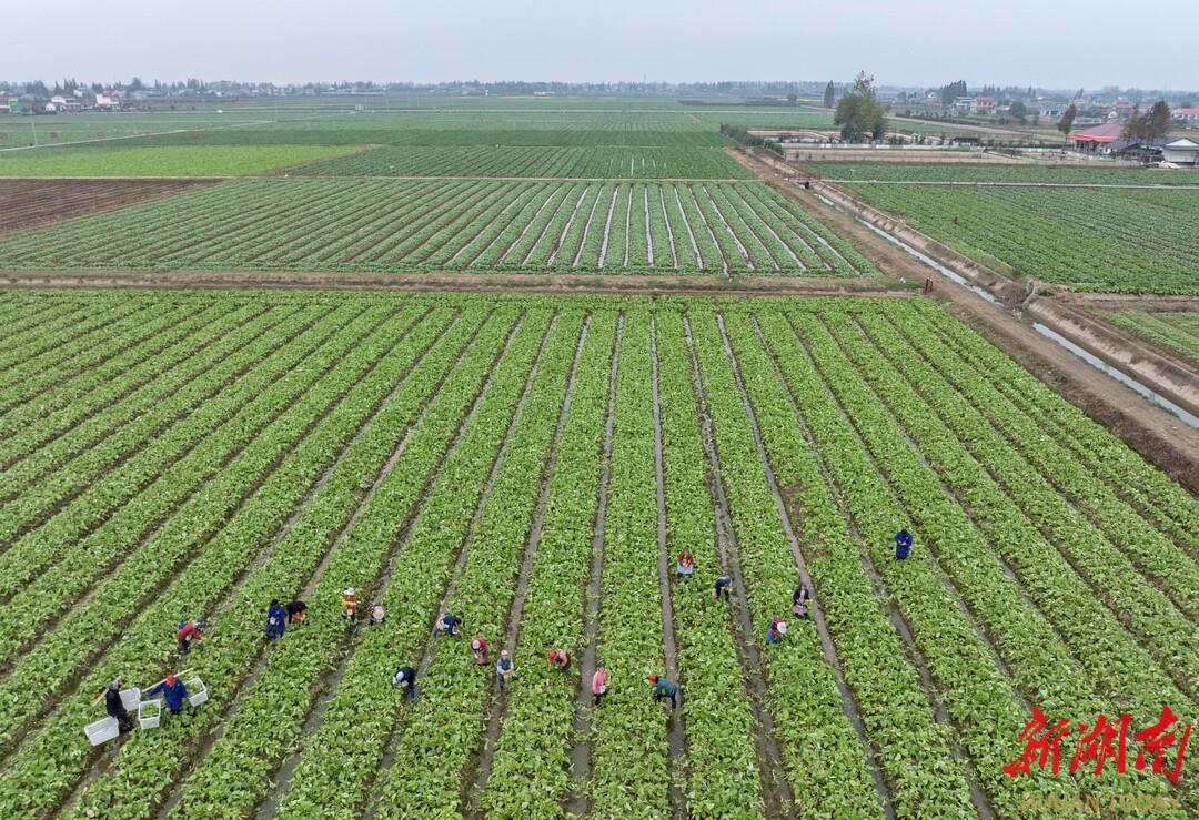 安乡县安康乡安兴村绿蔬园专业合作社稻稻菜示范基地,菜薹鲜嫩得能掐出水来,70%的菜薹供给粤港澳大湾区。采取稻稻菜种植模式,不与粮争地,冬田不闲,亩均增收约3000元。
